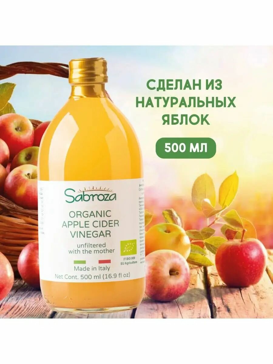 Sabroza яблочный уксус c уксусной маткой, натуральный, нефильтрованный,не пастеризованный, 500 мл, в стекле