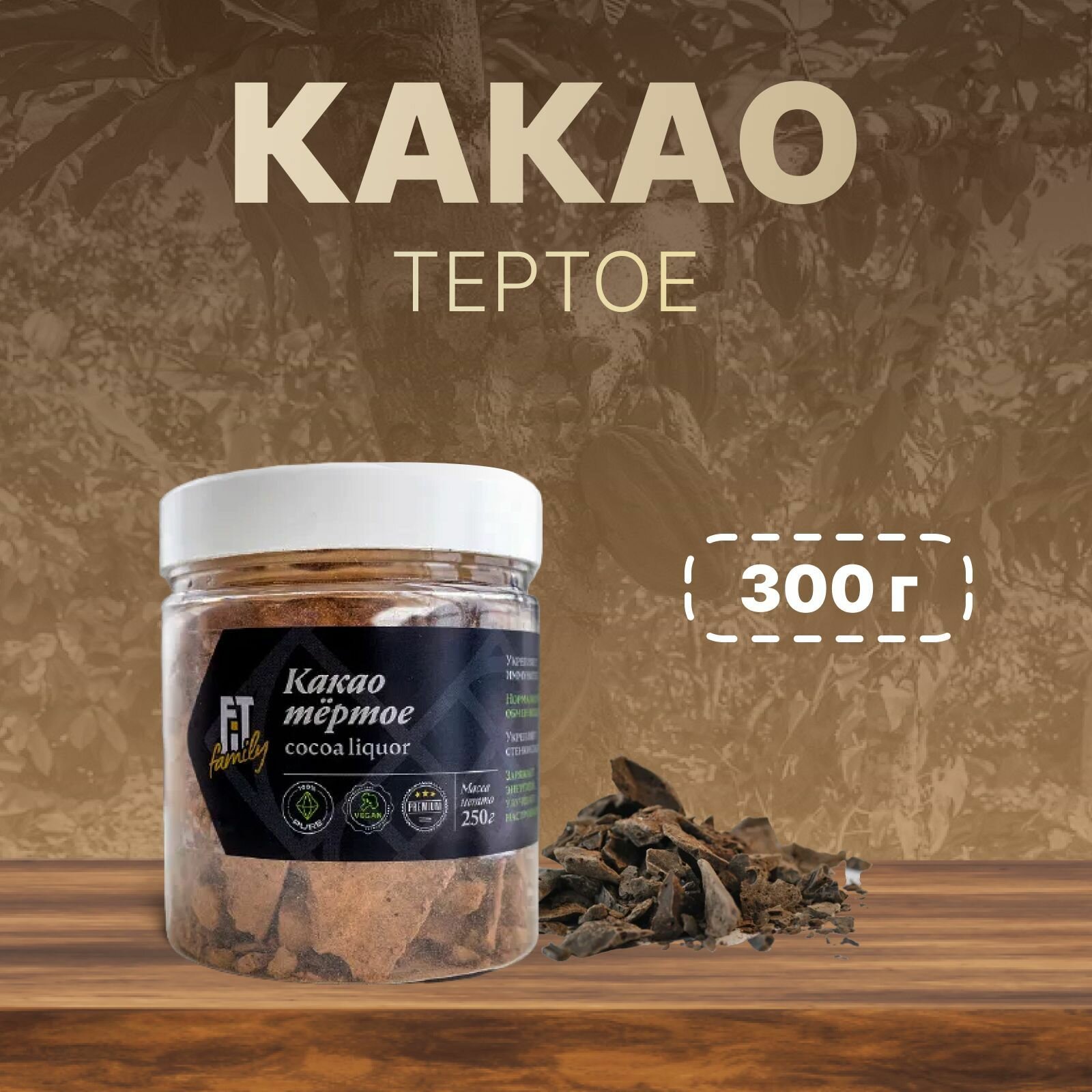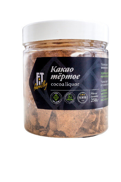 Какао тертое натуральное FIT Family, без сахара, банка 250 г интересное: