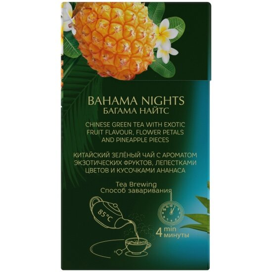 Чай зеленый Curtis "Bahama Nights" с кусочками спелого ананаса и ароматом экзотических фруктов фруктовый ароматизированный 20 пирамидок интересное: