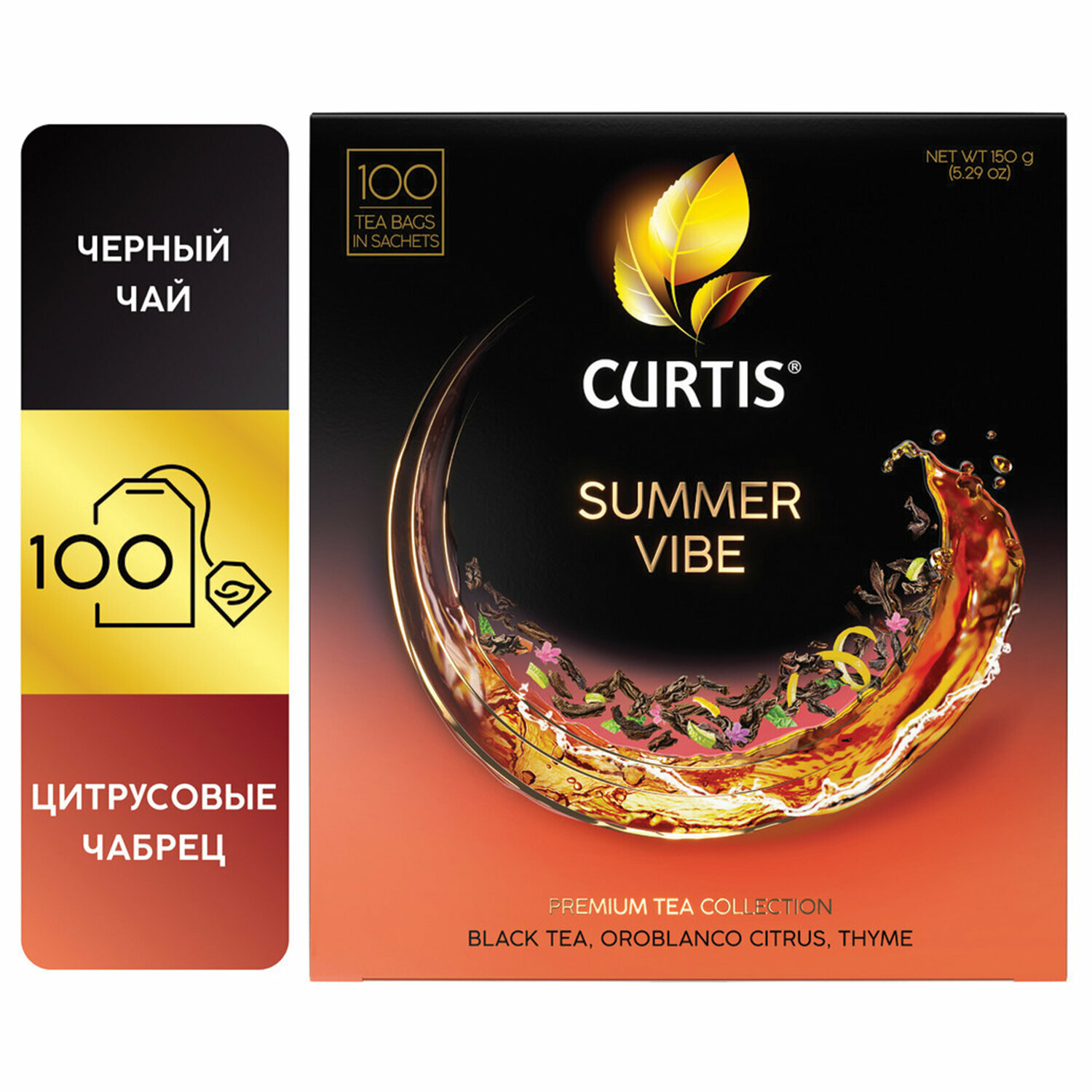 Чай черный в пакетиках CURTIS "Summer Vibe" 100 пакетиков, c чабрецом, мятой и ароматом цитрусовых, мелколистовой