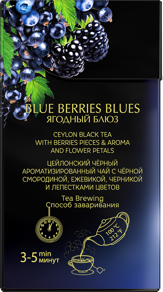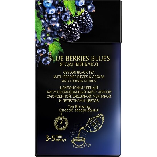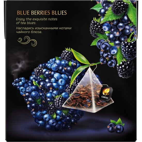 Купить Чай черный Curtis "Blue Berries Blues" с ярким ягодным вкусом фруктовый ароматизированный 20 пирамидок