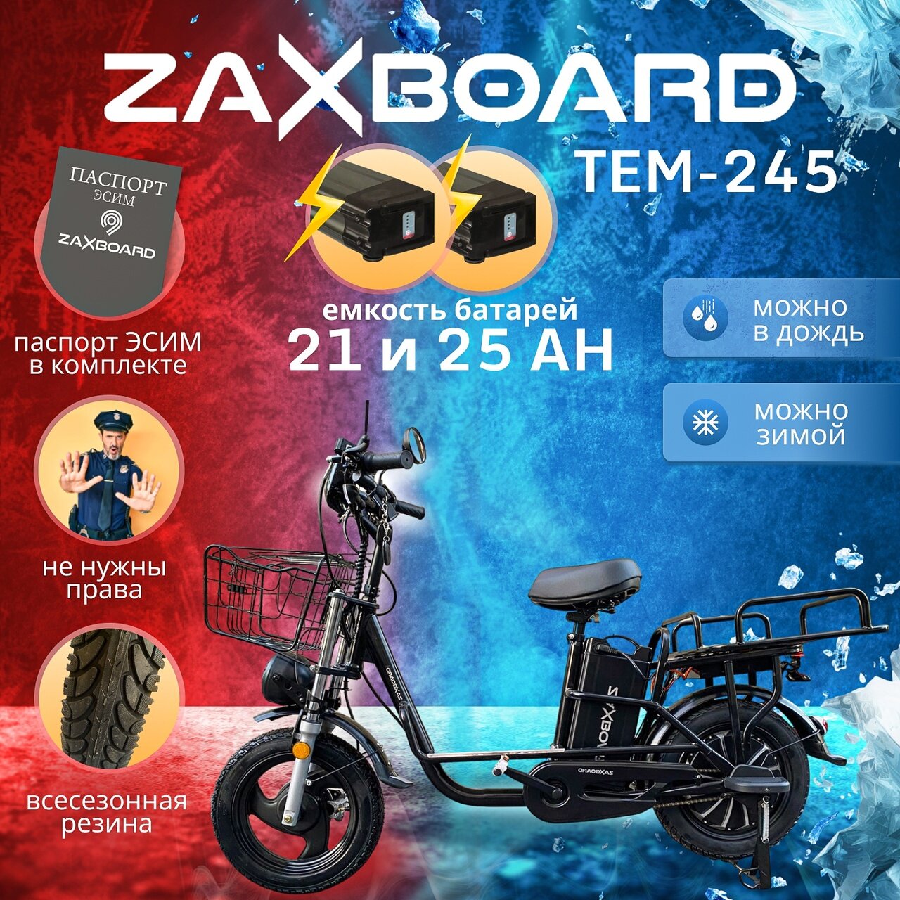 Купить Электровелосипед "монстр" Zaxboard Godzila AQUA TEM-245 All-SEASON 46AH (21ah+25ah) для курьера с паспортом СИМ
