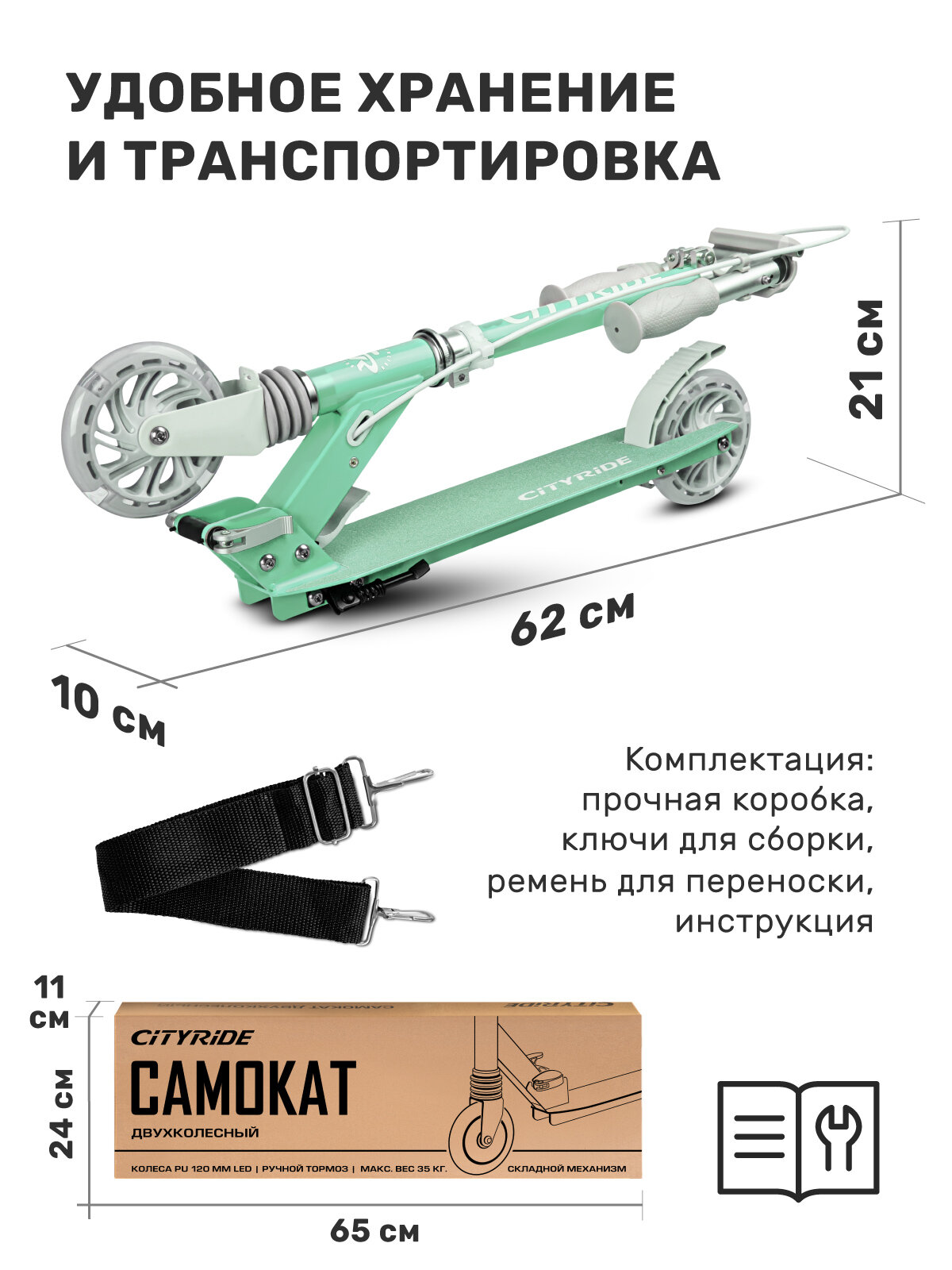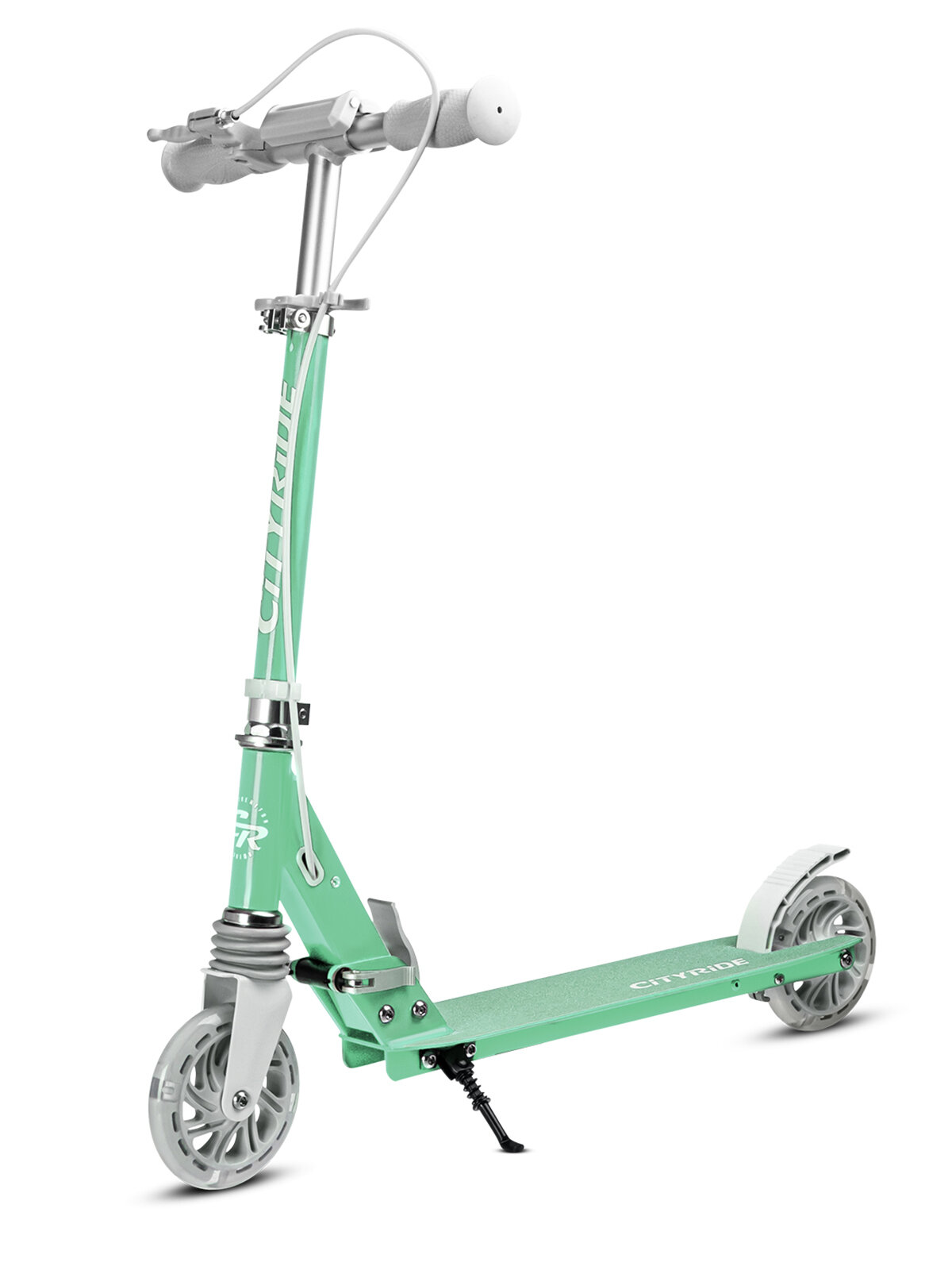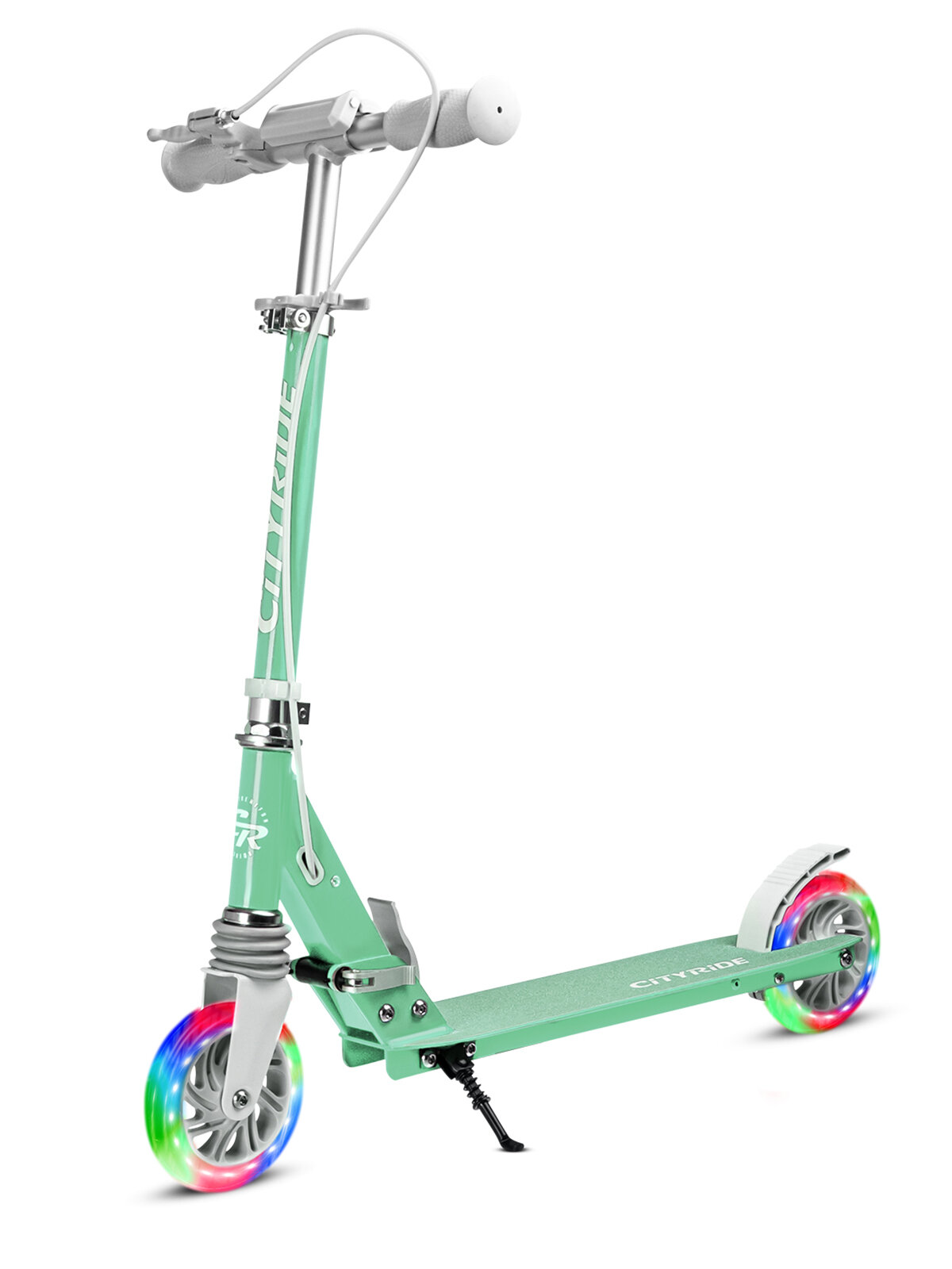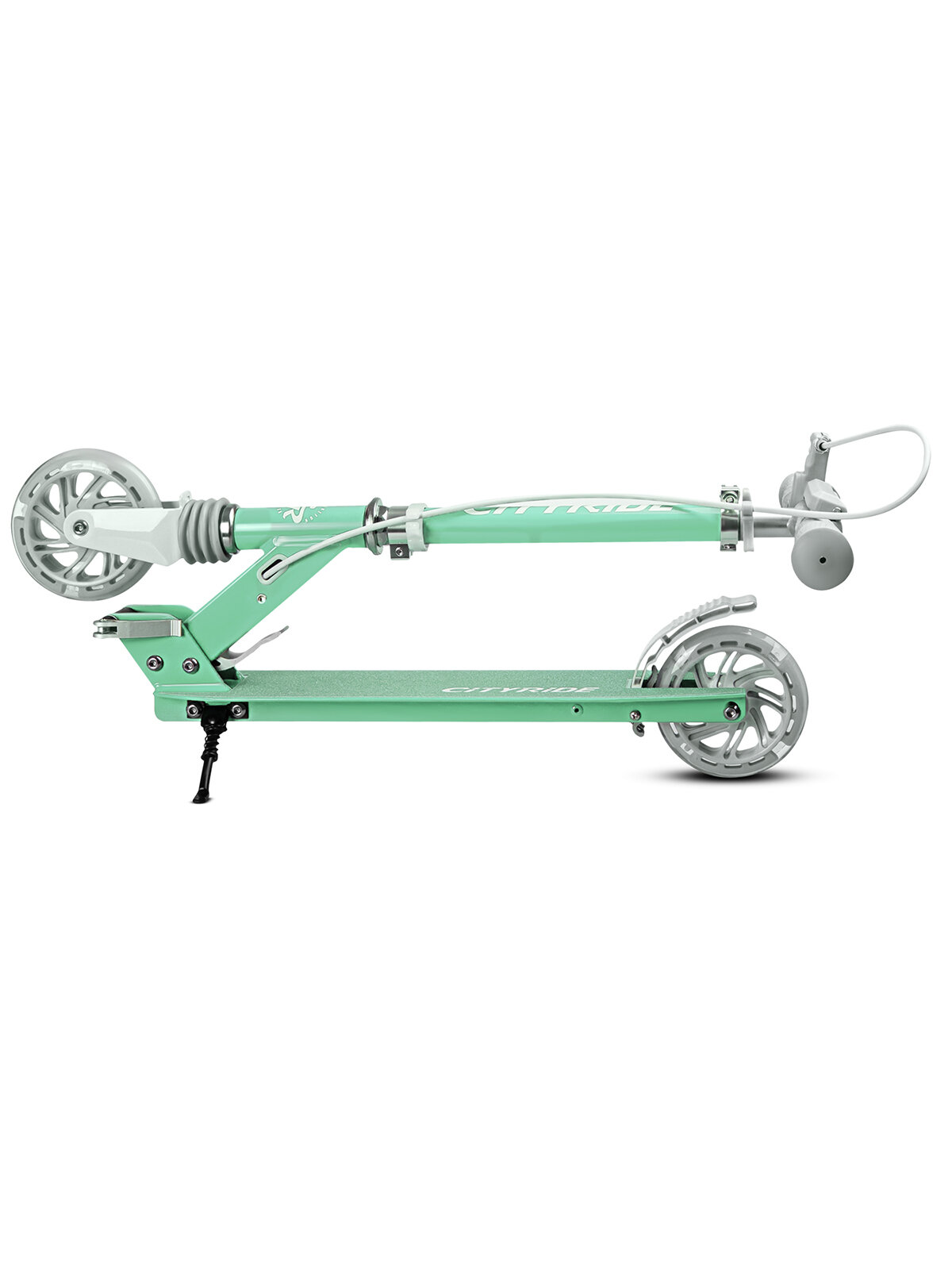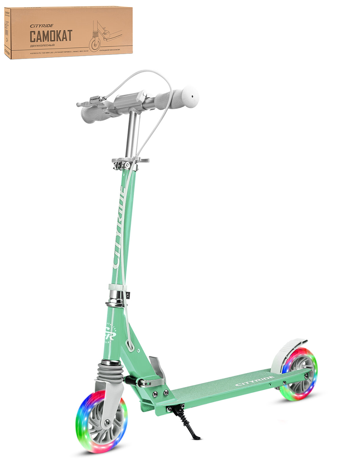 Самокат двухколесный ТМ CITYRIDE, складной, колеса светятся PU 120/120, ручной тормоз, подножка, CR-S2-09GN