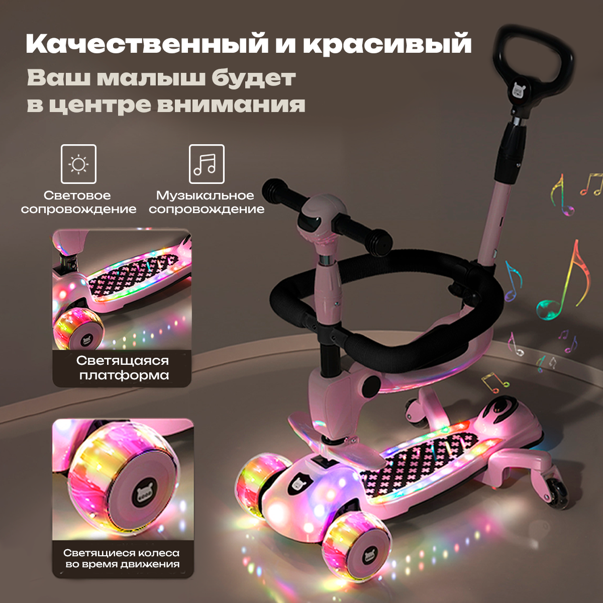Купить Трехколесный самокат с сиденьем и светящимися колесами для детей от 2 до 12 лет Kiddo Craze