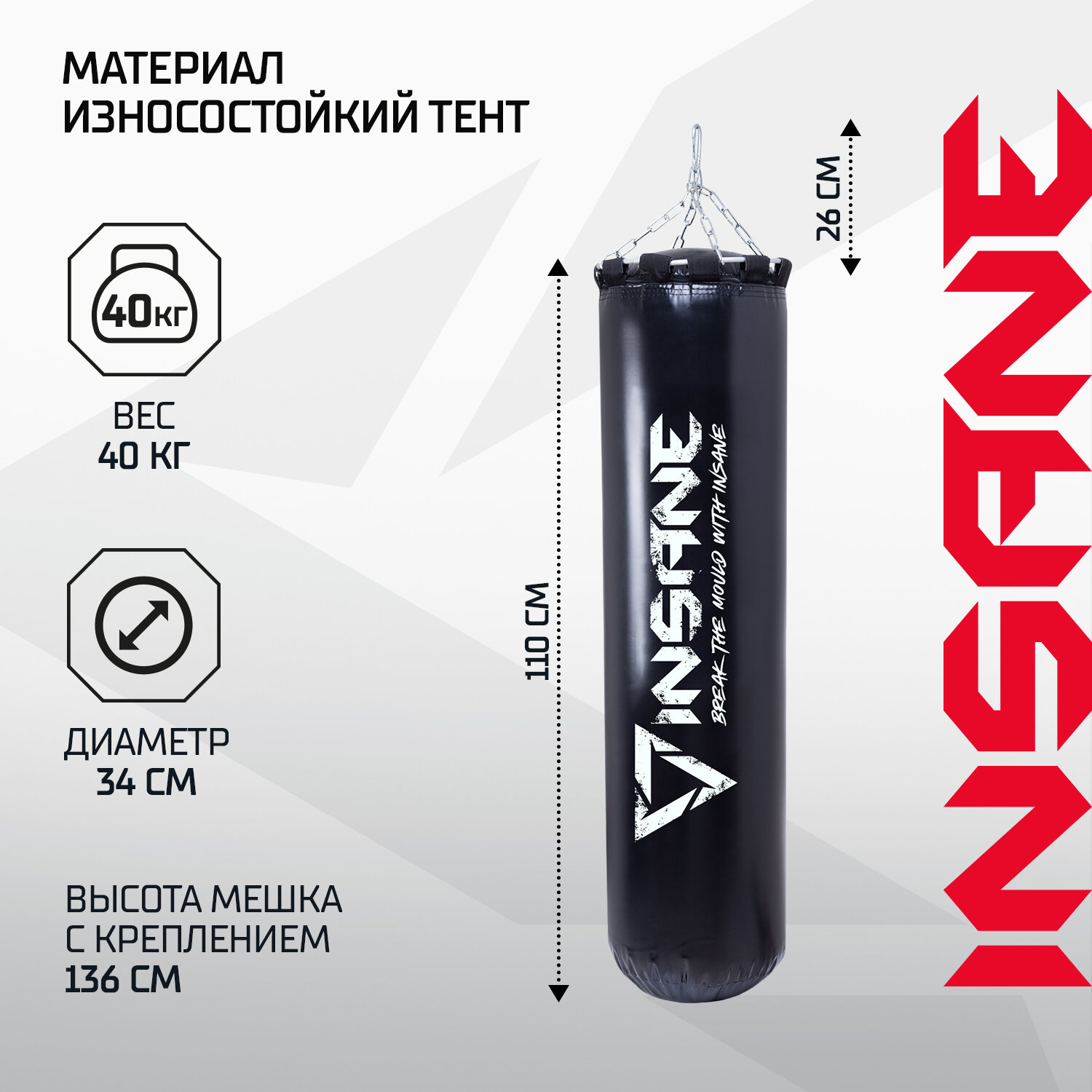 Купить Мешок боксерский INSANE 110 см, 40 кг, тент, черный груша боксерская