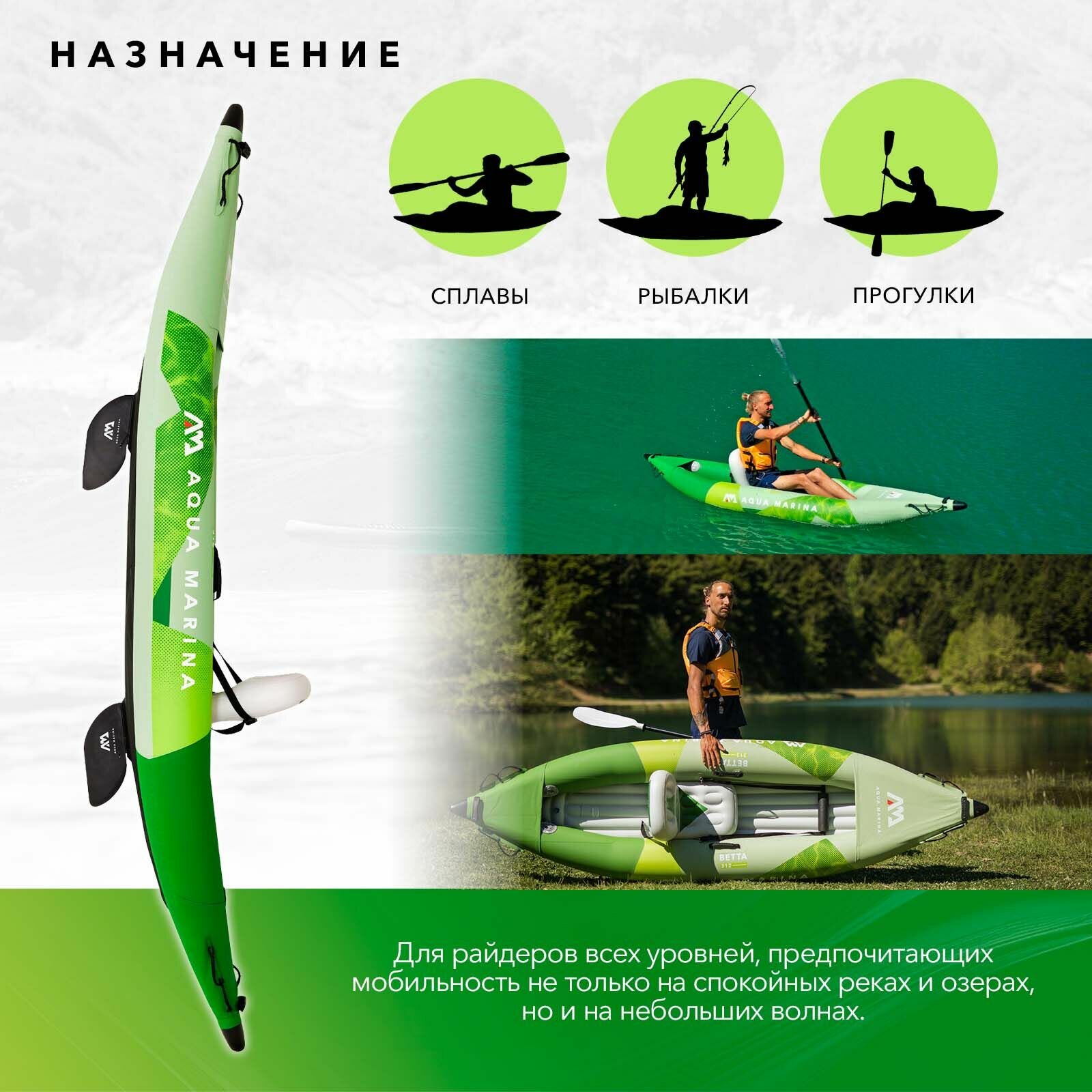 Ниже Вы можете прочитать отзывы на Каяк надувной одноместный с веслом Aqua Marina Betta-312 размеры 312x80 см, макс 110 кг, в комплекте сумка, насос, сиденье весло плавник (BE-312), ознакомится с подробными характеристиками, посмотреть интересные обзоры и фотографии на Каяк надувной одноместный с веслом Aqua Marina Betta-312 размеры 312x80 см, макс 110 кг, в комплекте сумка, насос, сиденье весло плавник (BE-312).