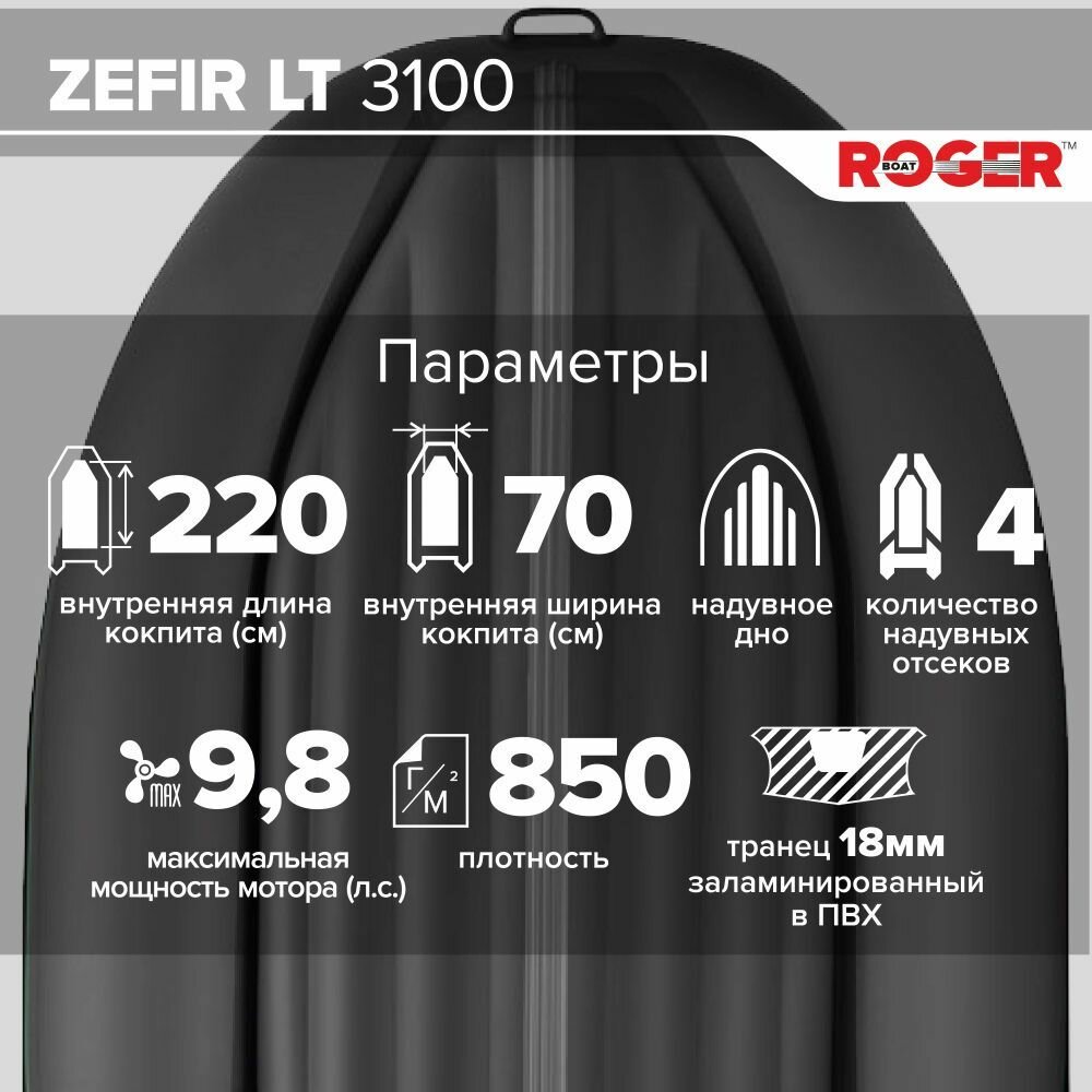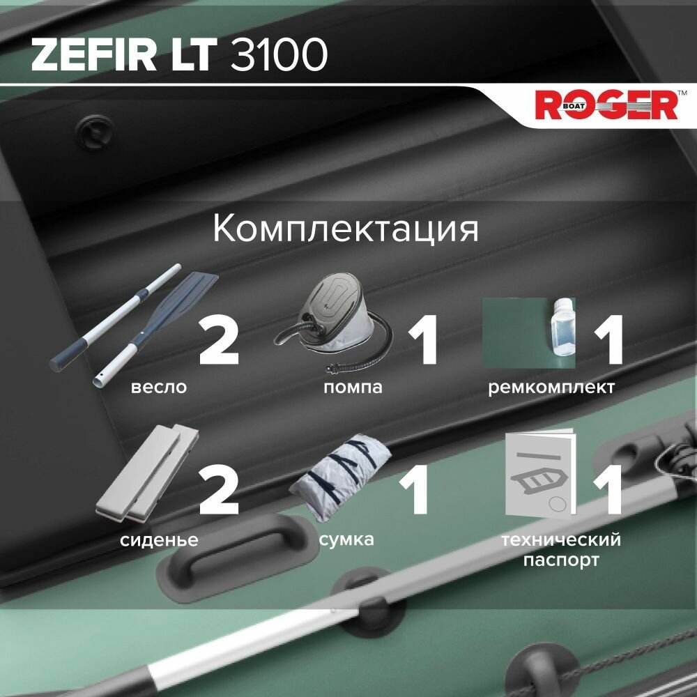Лодка надувная ПВХ под мотор ROGER Zefir 3100 LT, лодка роджер НДНД малый киль (зеленый-черный) интересное:
