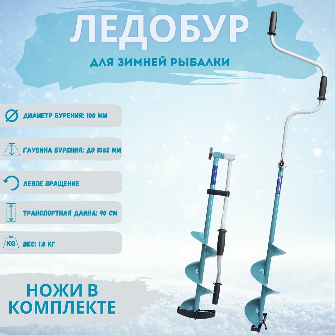 Ледобур для зимней рыбалки / Ледобур складной, шнековый, двуручный диаметр 100 мм интересное: