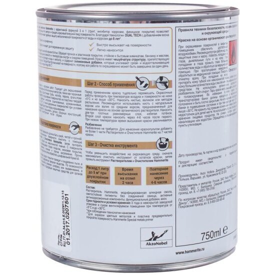 Hammerite Smooth эмаль гладкая по ржавчине 3в1 (серый RAL 7042, 0,75 л)