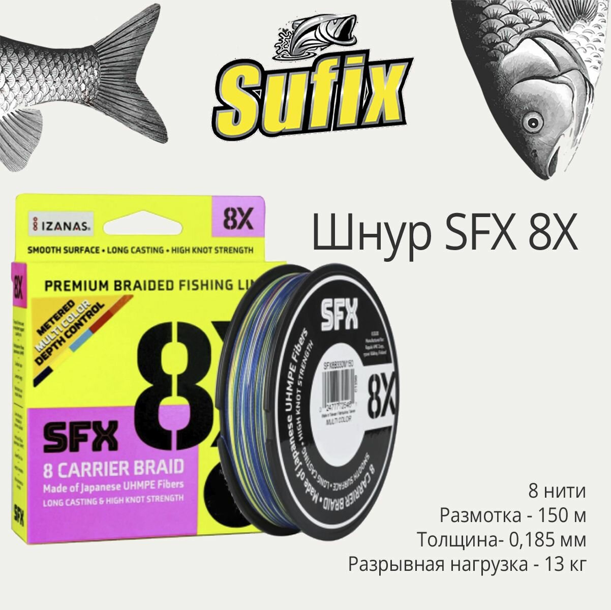 Плетеный шнур для рыбалки Sufix SFX 8X разноцветная 150 м, 0,148 мм, 7,7 кг, PE 0,8 (леска плетеная)