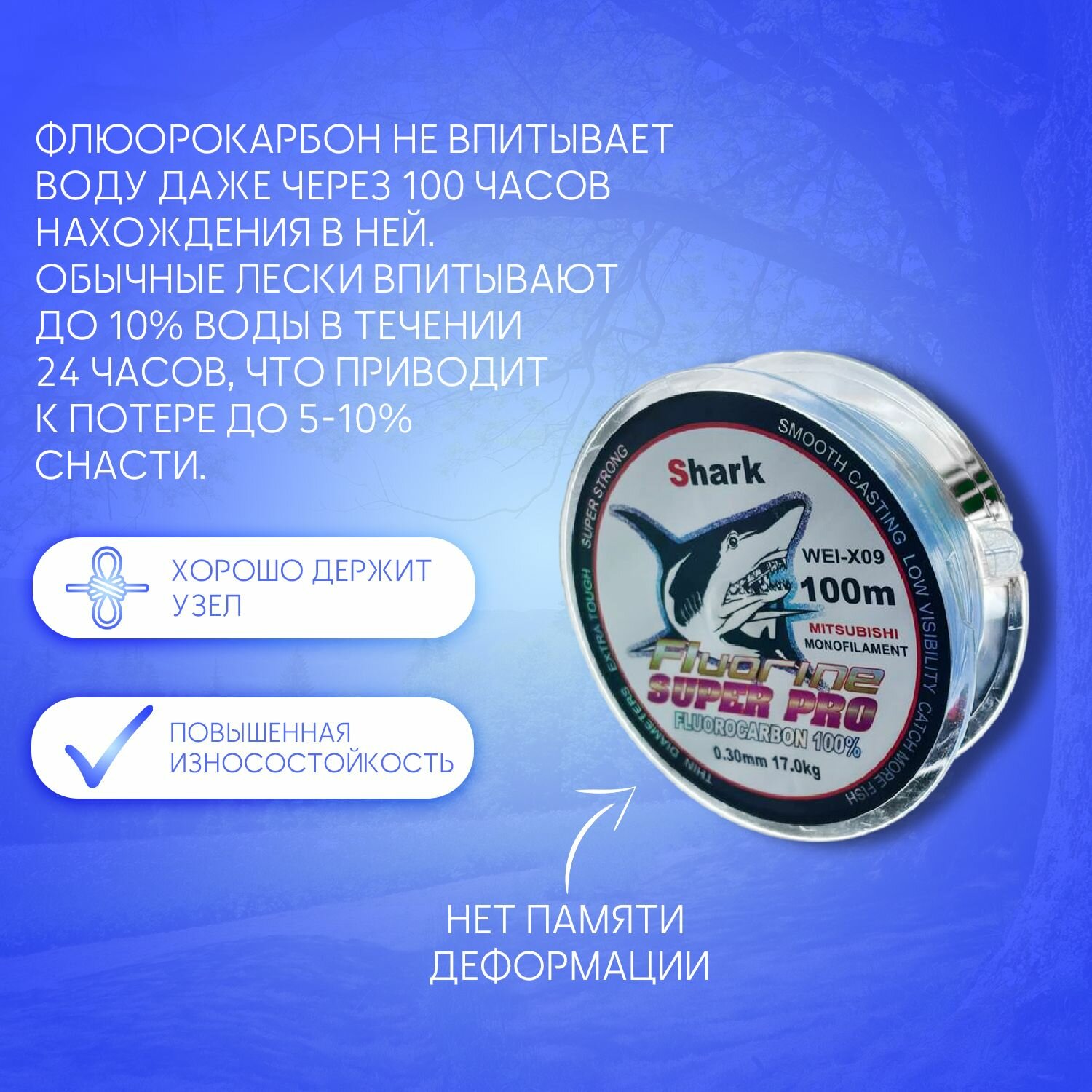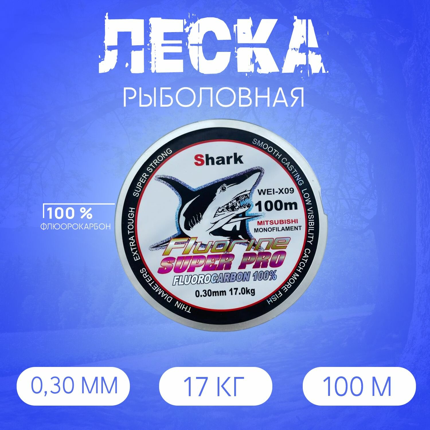 Купить Леска Флюорокарбоновая Shark 100м, 0.30 мм, 17 кг голубая