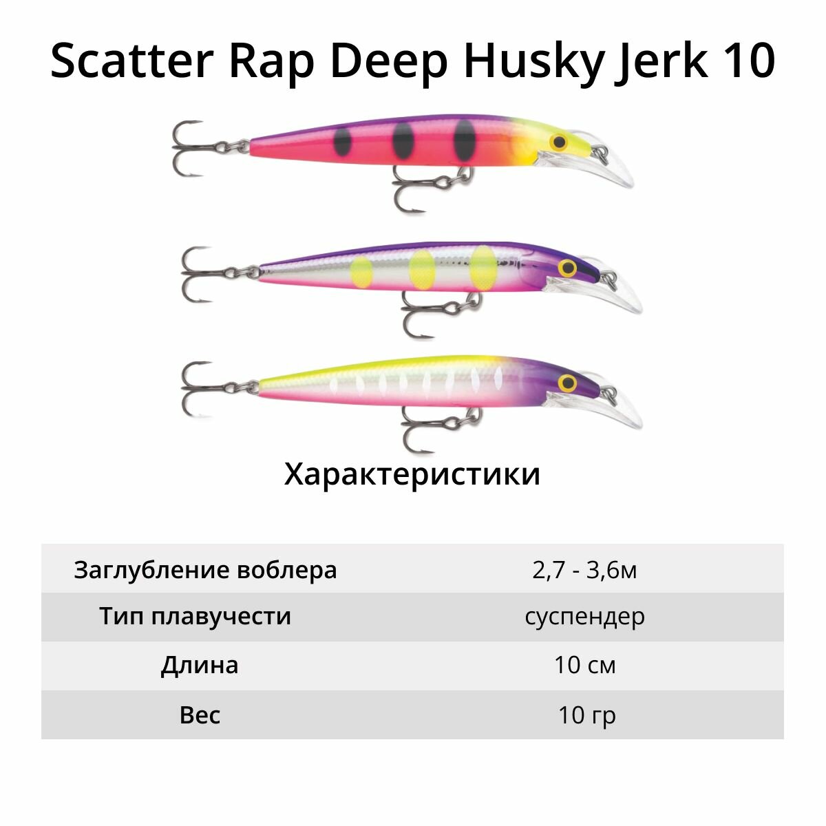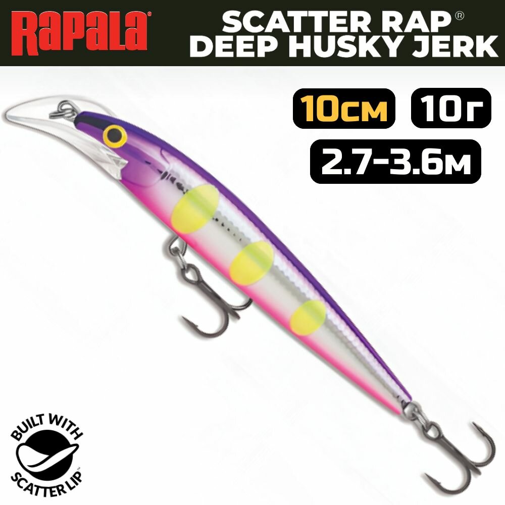 СохранитьВоблер RAPALA Scatter Rap Deep Husky Jerk 10, VDH, суспендер, 2.7-3.6м, 10см, 10гр. интересное: