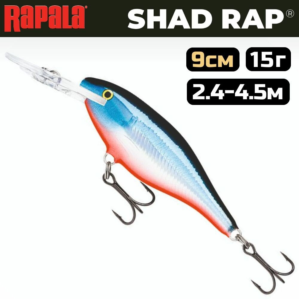 Купить Воблер RAPALA Shad Rap 09 /BGHH /плавающий/ 2,4-4,5м, 9см, 15гр