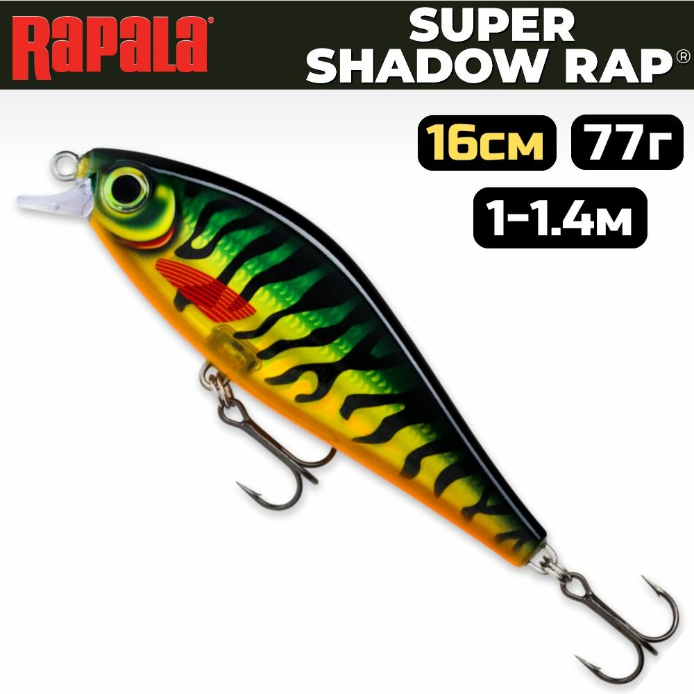 Воблер RAPALA Super Shadow Rap 16 HPS медленно тонущ. 1,0-1,4м, 16см, 77гр