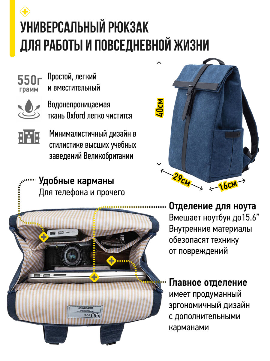 Рюкзак Xiaomi 90 Points Grinder Oxford Casual Backpack, синий, CN