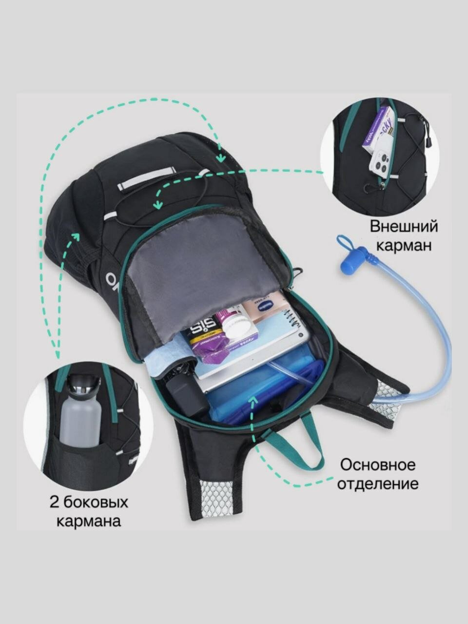 Жилет для бега, рюкзак гидратор, темно-бирюзовый