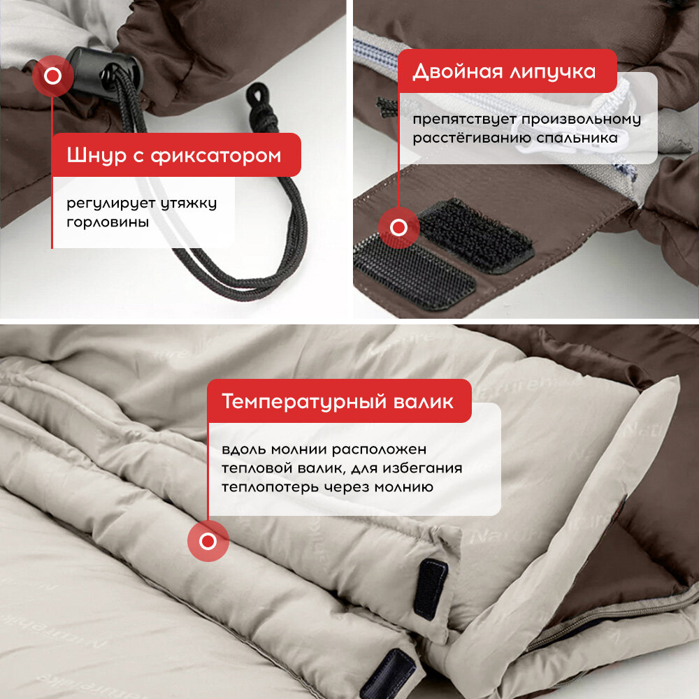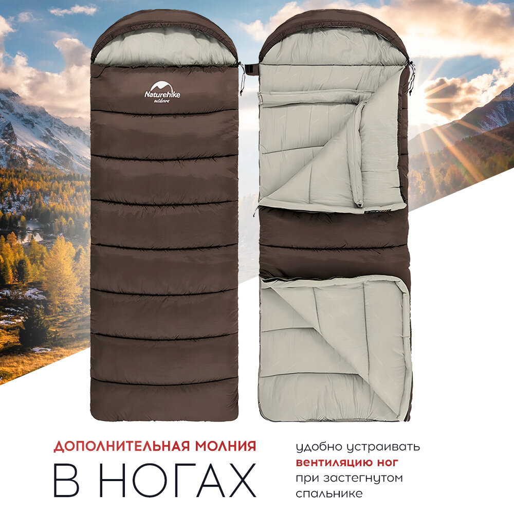 Мешок спальный Naturehike U250, (190х30)х75 см, (правый) (ТК: +6C), коричневый