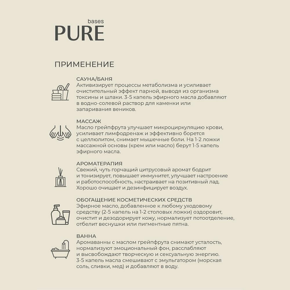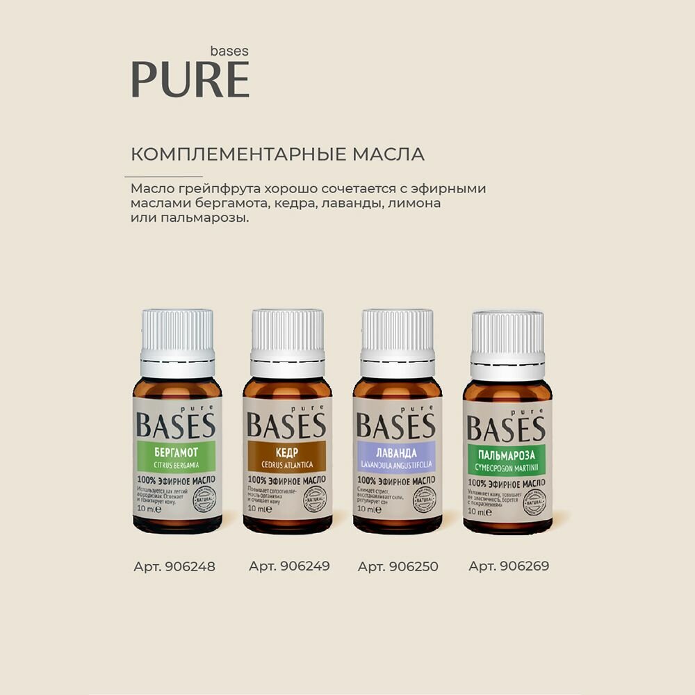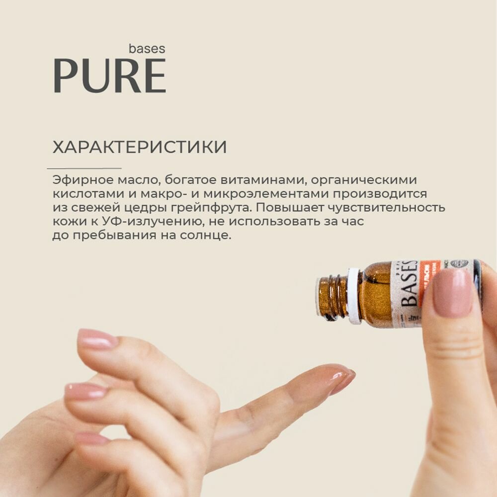Натуральное 100% эфирное масло PURE BASES Грейпфрут, 10 мл.
