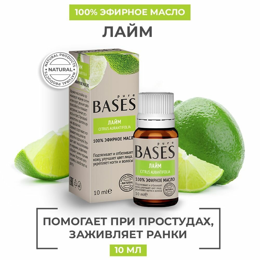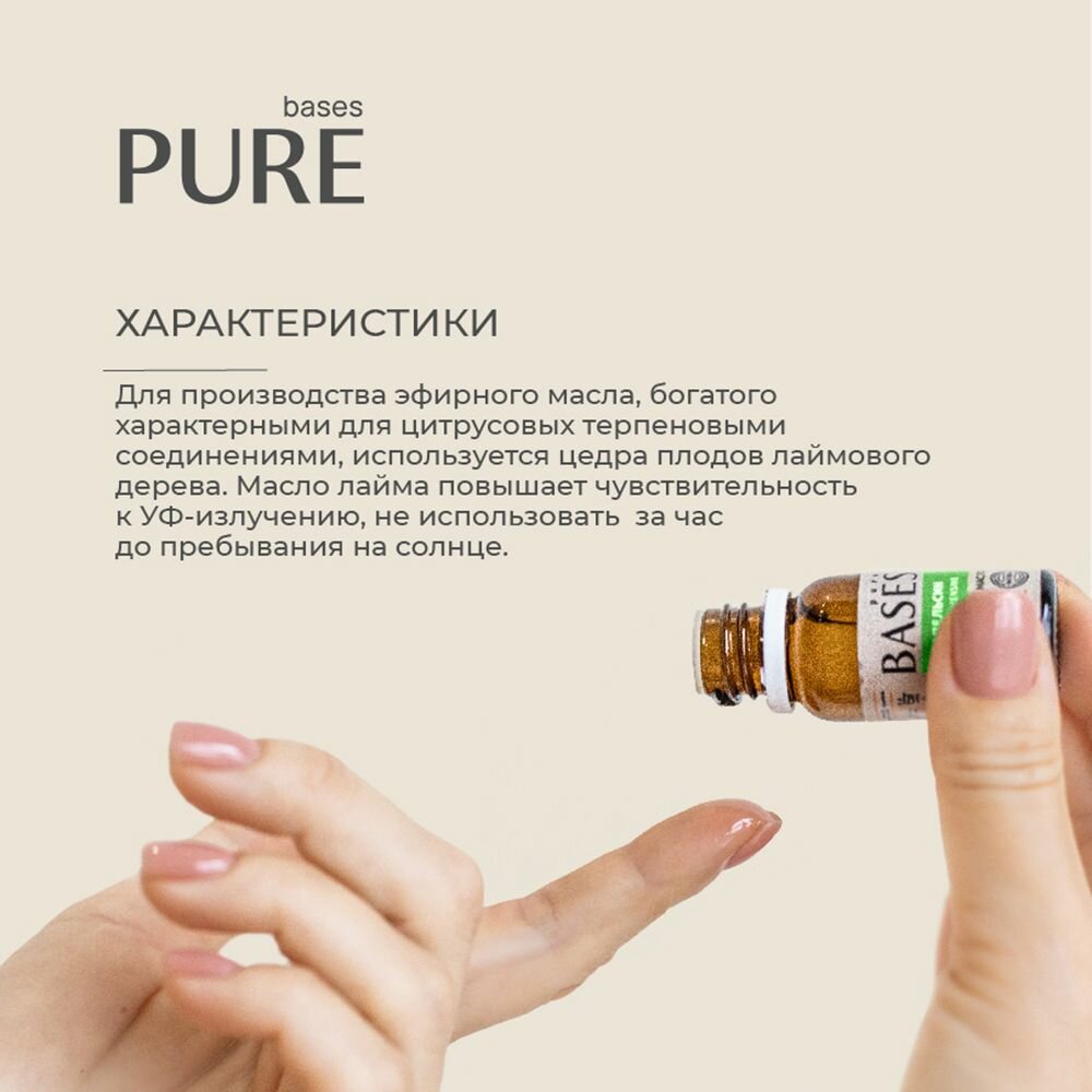 Натуральное 100% эфирное масло PURE BASES Лайм, 10 мл.