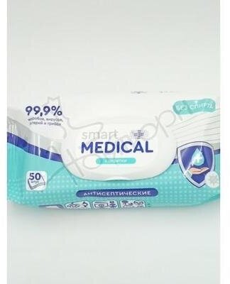 Купить smart MEDICAL Влажные салфетки Smart medical, антисептические, с пластиковым клапаном 50 шт.