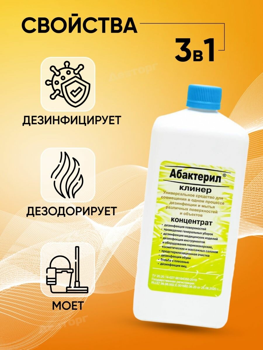 3 шт. Универсальное дезинфицирующее моющее средство Абактерил Клинер 1л ГОСТ 12.1.007-76 ГОСТ 12.1.007-76