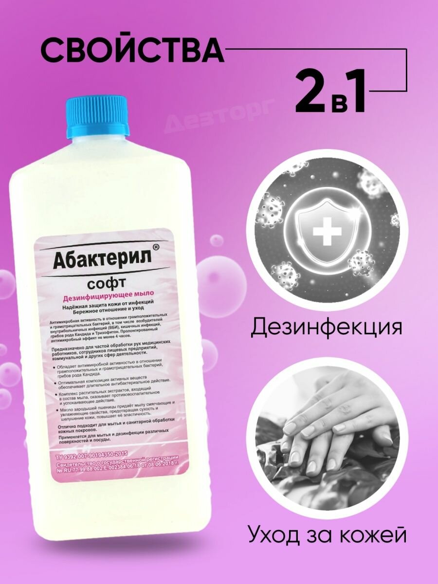 2 шт. Абактерил-Софт, дезинфицирующее мыло 1 л. ГОСТ 12.1.007-76