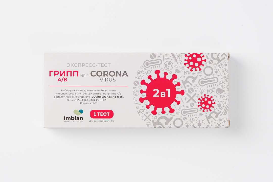 Тест Экспресс на антиген 2в1, Covid-19+грипп А/В, Imbian, 1шт iKR-004/1.1