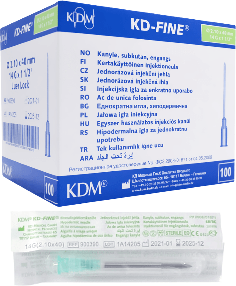 Иглы инъекционные стерильные KDM KD-Fine 21G (0.80х40), 100 шт