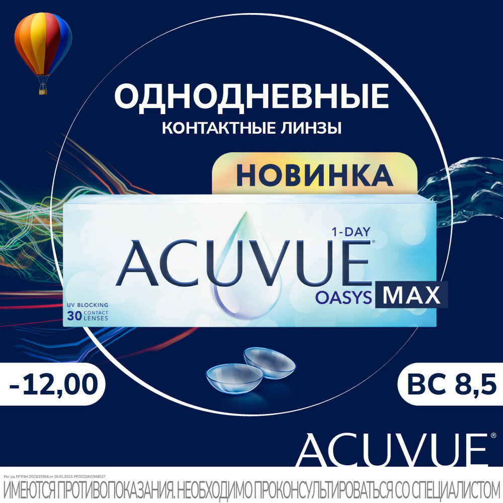 Купить Однодневные контактные линзы ACUVUE Oasys Max 1-Day 30 pk (BC 8.5; D -12.00)