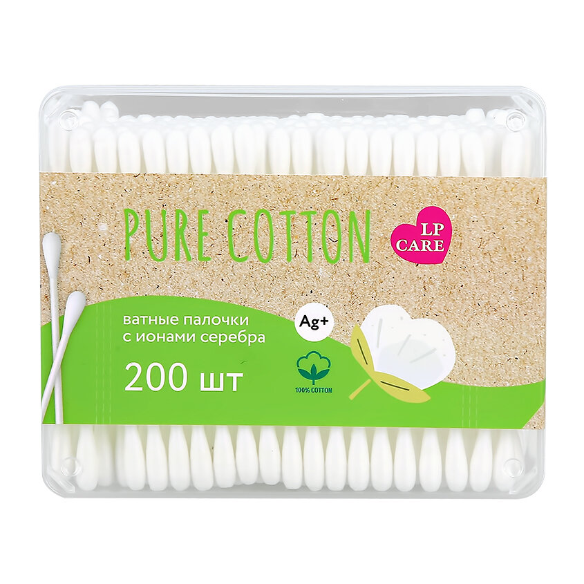 LP CARE Палочки ватные PURE COTTON с ионами серебра в коробке 200 шт интересное: