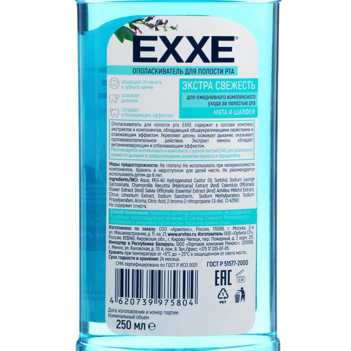 EXXE ополаскиватель Экстра свежесть мята и шалфей, 250 мл, шалфей интересное: