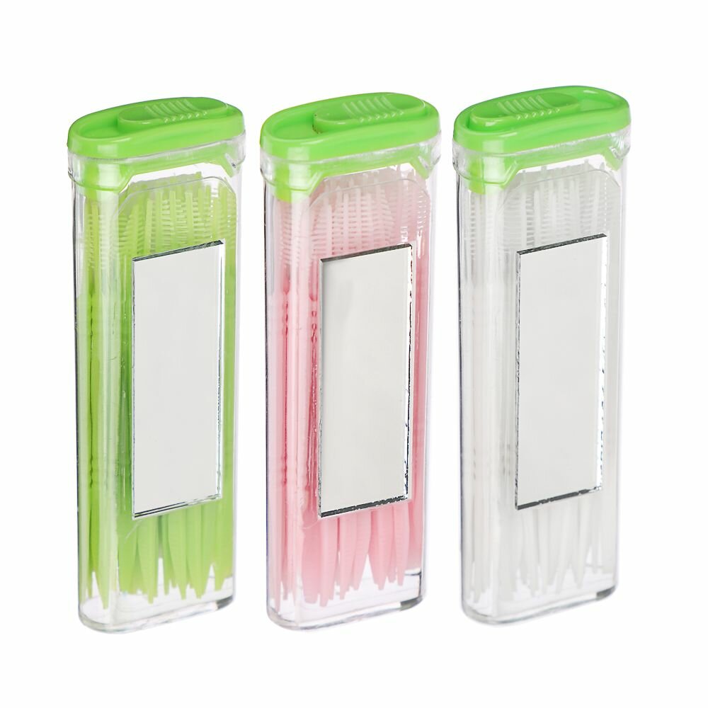 Зубочистки пластиковые с ершиком VETTA, 30 шт, пластиковый футляр с зеркалом