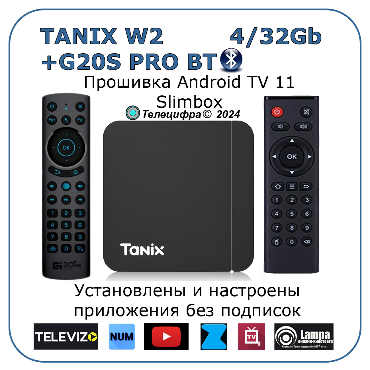 Смарт приставка Tanix W2 4/32Gb, Android TV 11, Прошивка slimBOXtv c установленными приложениями