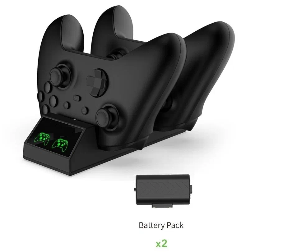 Зарядная станция для джойстиков геймпадов Xbox One / X-Series S / X / Dobe Charging Dock + 2 аккумулятора 800mAh интересное: