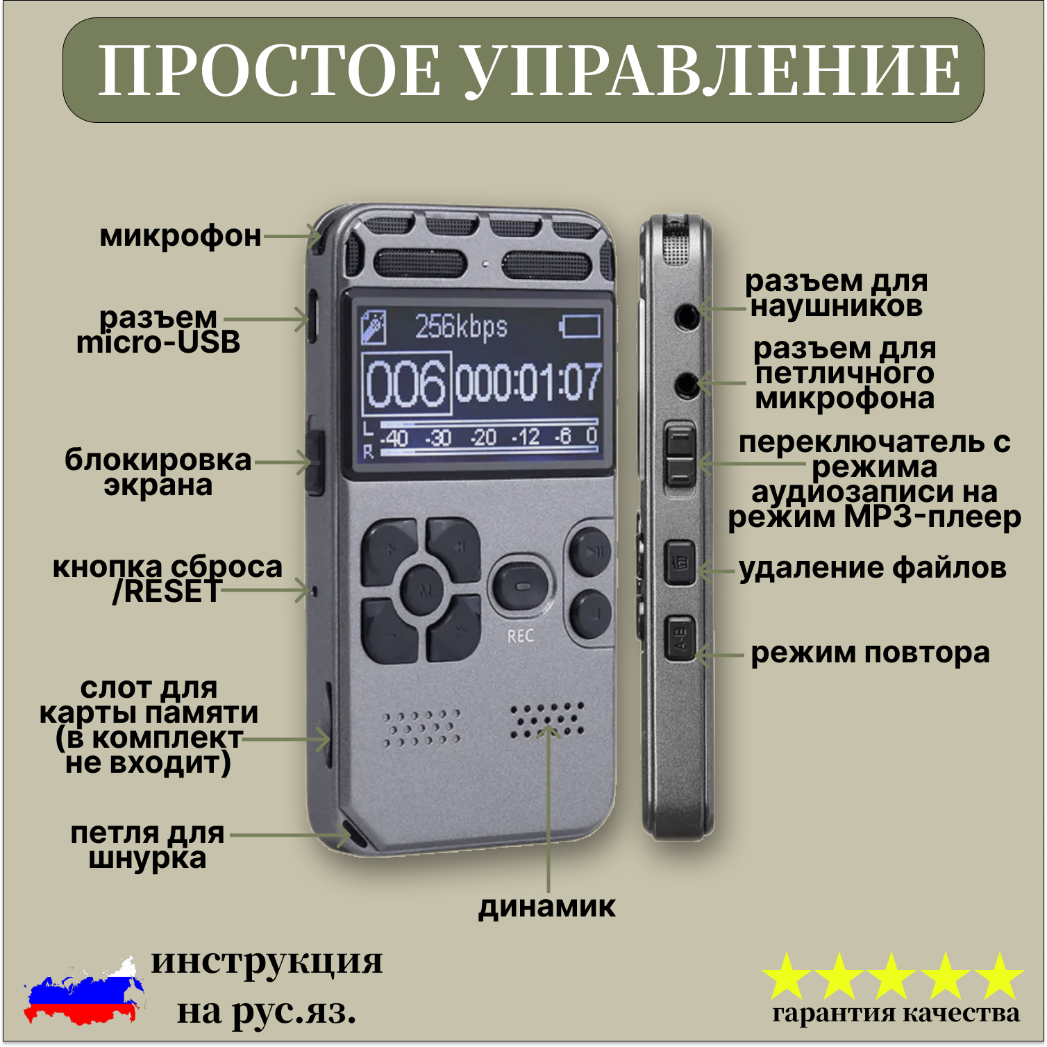 Профессиональный цифровой диктофон RW097 с дисплеем+8ГБ памяти, 35 часа непрерывной записи/ MP3-плеер интересное: