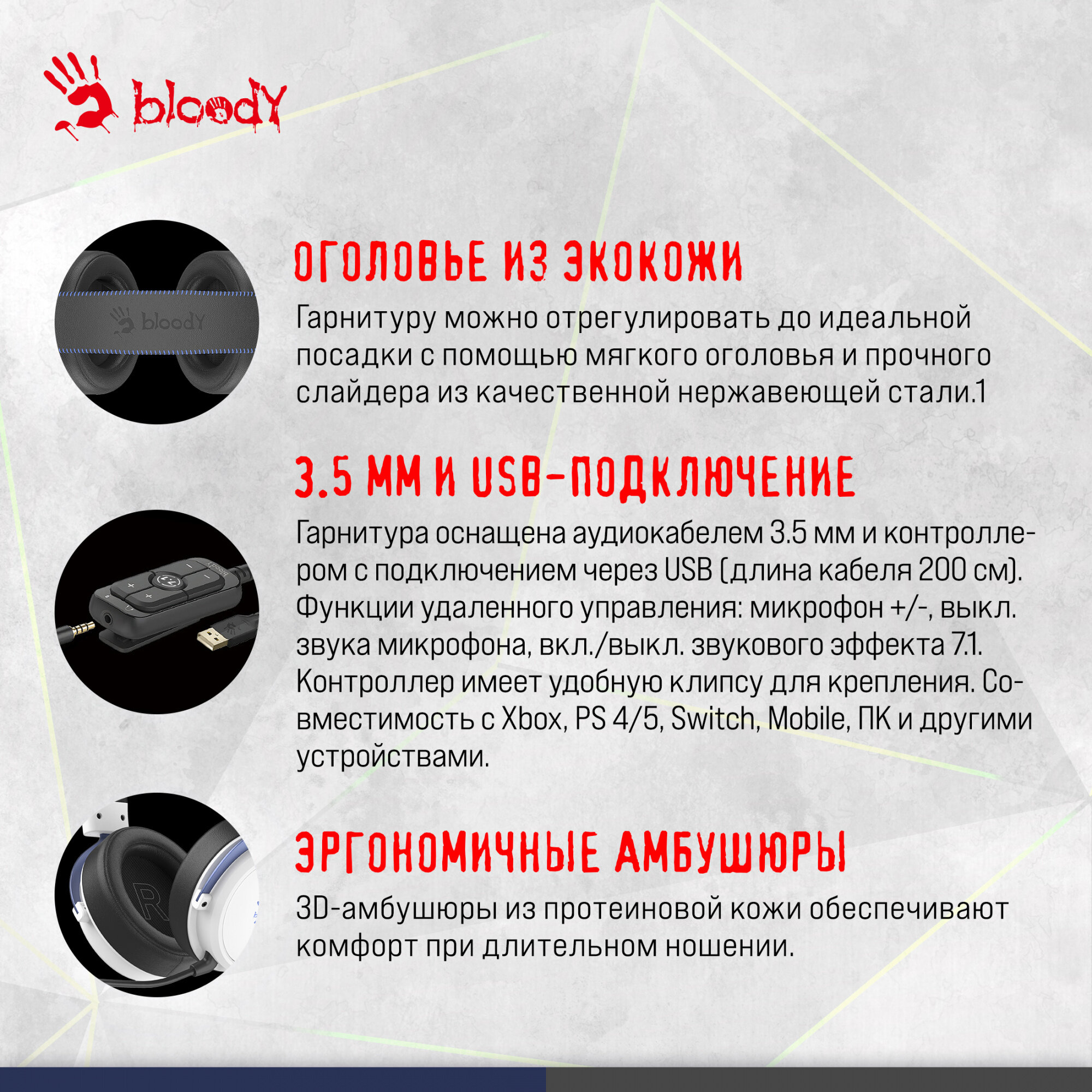 Гарнитура игровая A4Tech Bloody G260p, белый/черный (g260p)