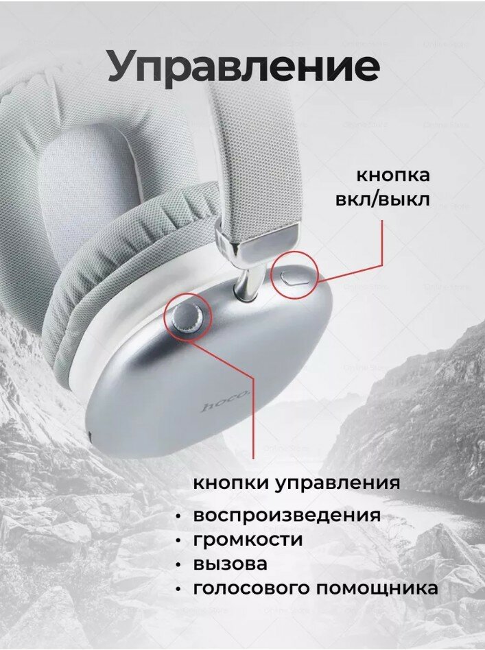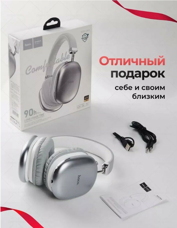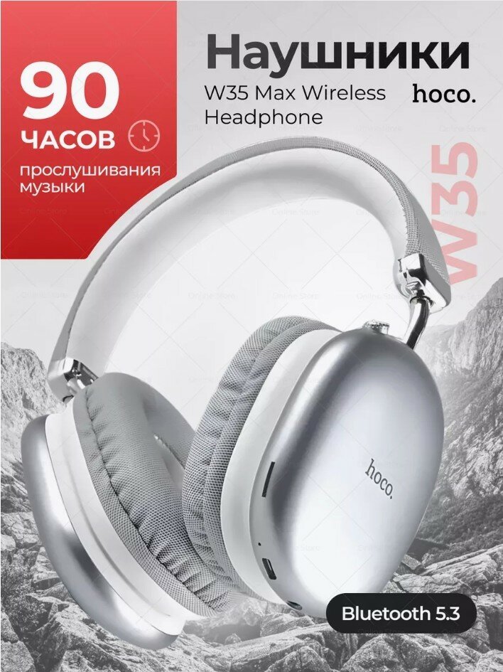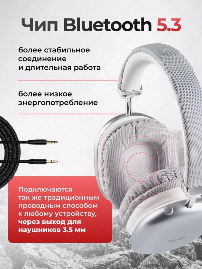 Стереонаушники Bluetooth полноразмерные Hoco W35 Max V5.3/45ч серебристые интересное: