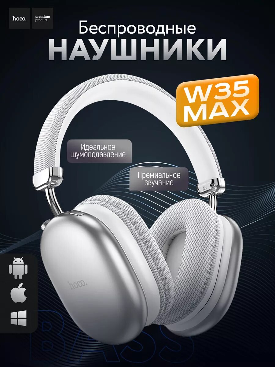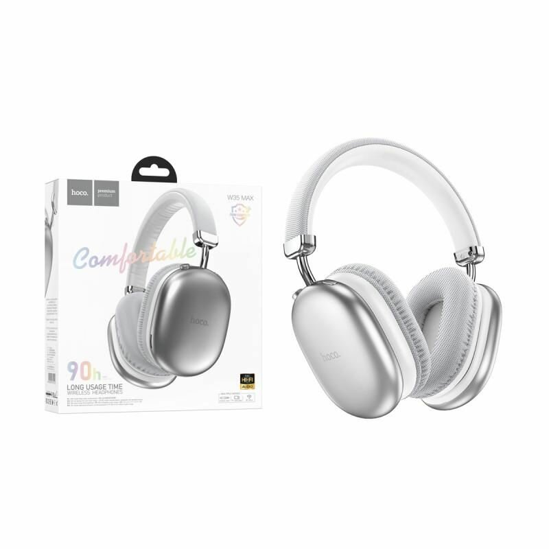 Наушники беспроводные с микрофоном hoco W35 MAX, Bluetooth, 3.5 мм, большие накладные наушники, серебристый