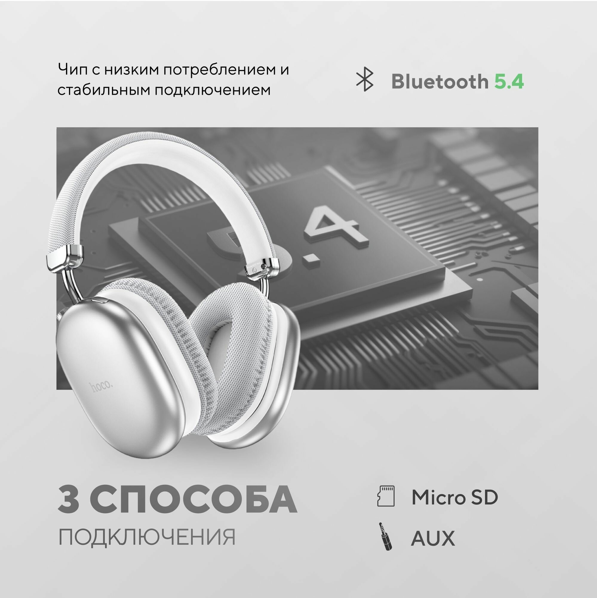Наушники беспроводные с микрофоном hoco W35 MAX, Bluetooth, 3.5 мм, большие накладные наушники, серебристый