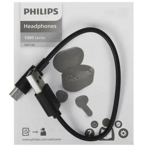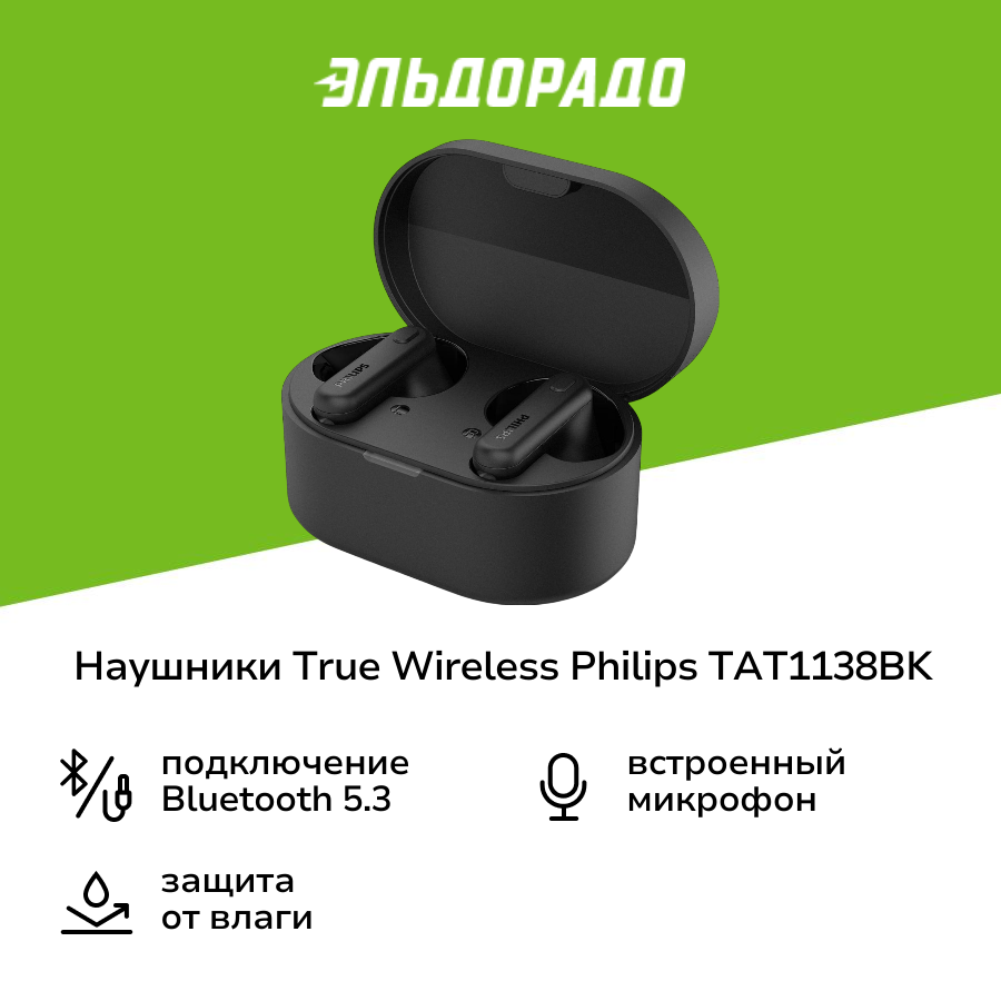 Bluetooth наушники вкладыши с микрофоном TWS Philips TAT1138BK/10 беспроводная мобильная гарнитура, чёрные интересное: