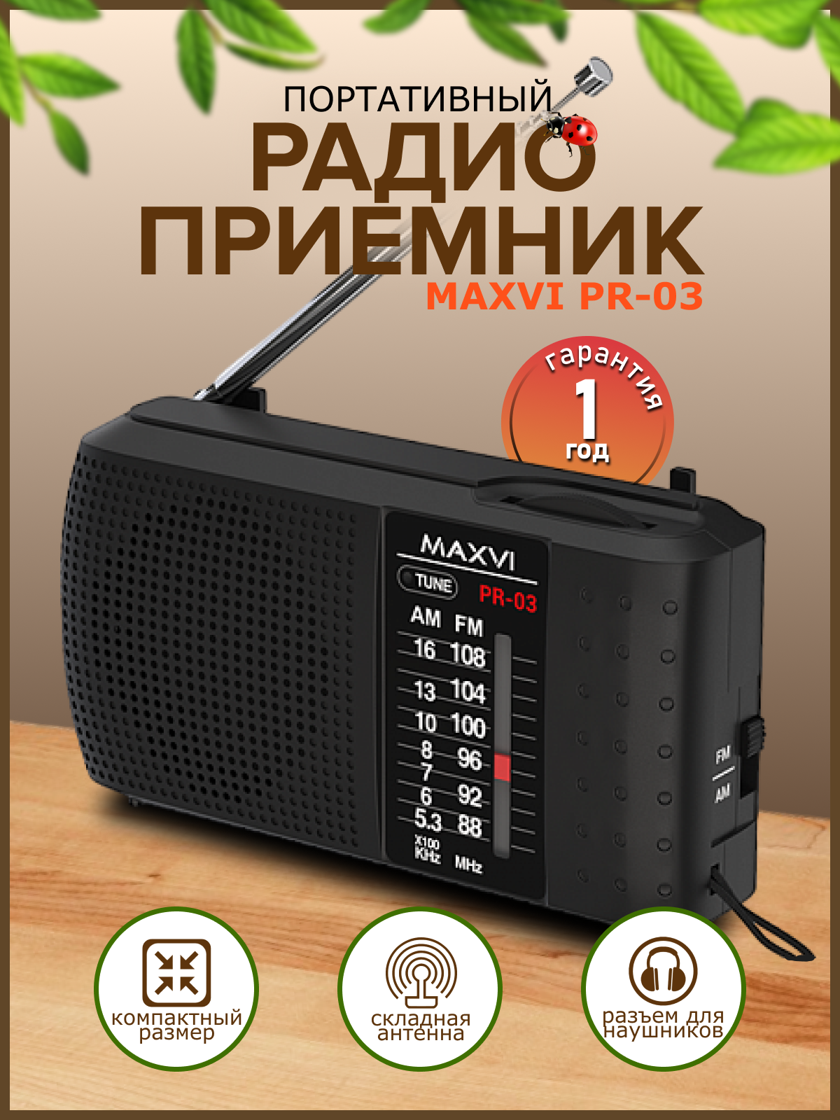 Купить Радиоприемник портативный Maxvi PR-03 черный с разъемом для наушников
