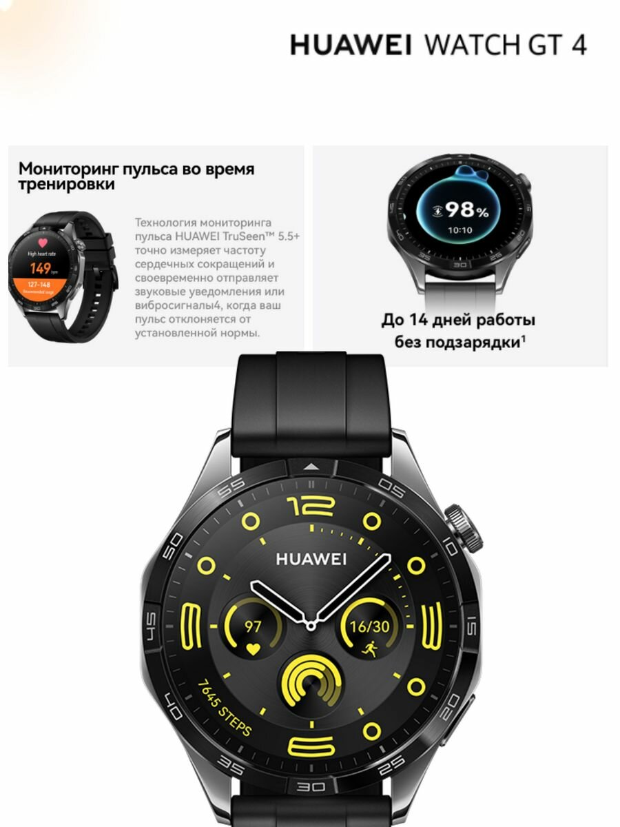 Купить Смарт-часы HUAWEI Watch GT 4 46mm Black Fluoroelastomer Strap