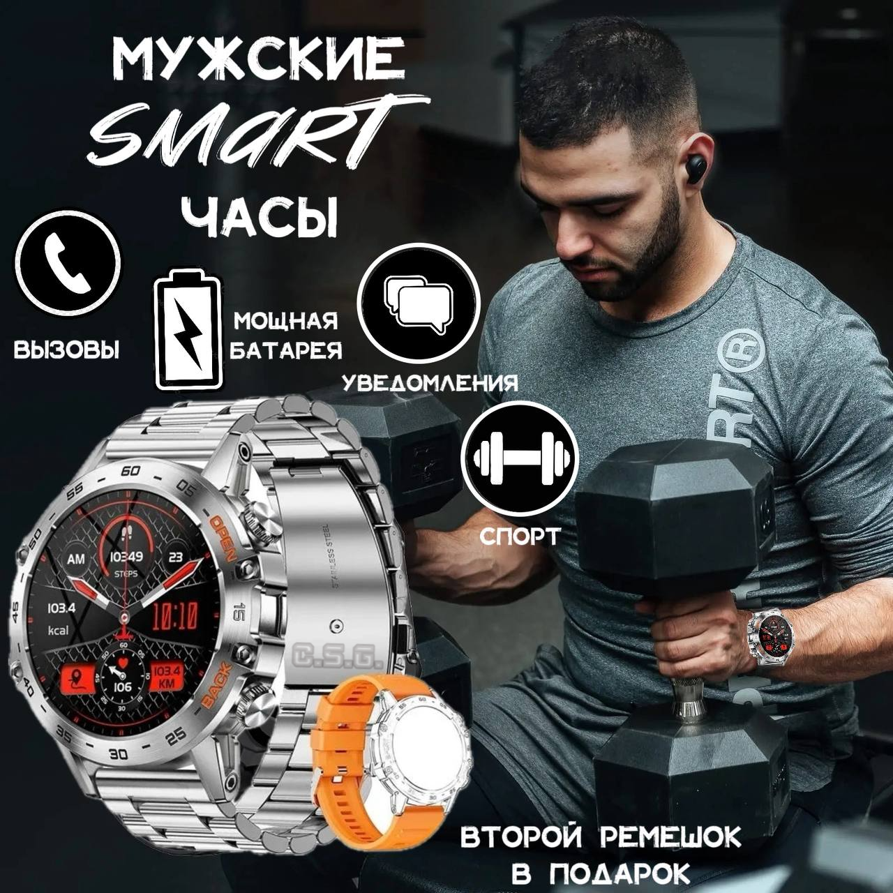 Смарт часы мужские MELANDA K52, серебристая сталь