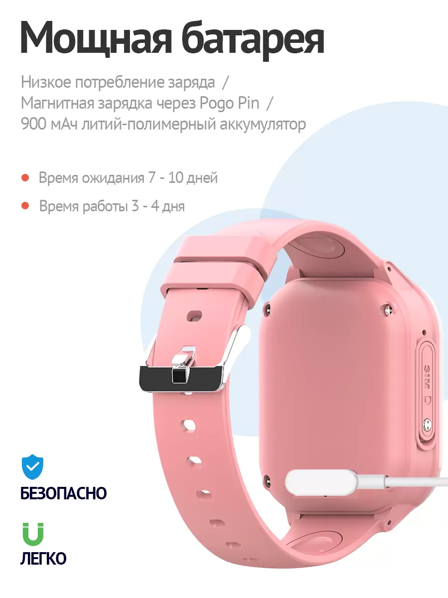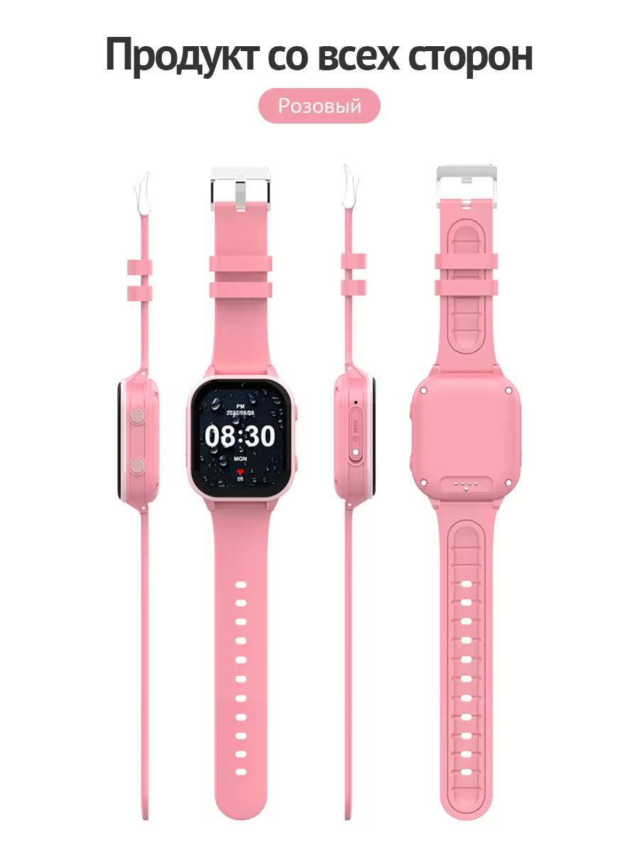 Детские умные часы Smart Baby Watch KT19 Pro 4G от Wonlex с GPS, телефоном, виброзвонком, видеозвонком, WhatsApp, розовые