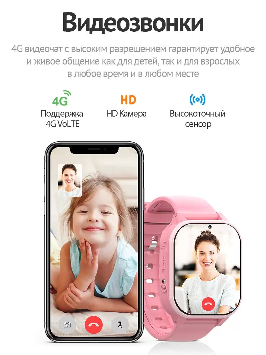 Детские умные часы Smart Baby Watch KT15 Pro 4G от Wonlex с телефоном, GPS, видеозвонком, WhatsApp, розовые