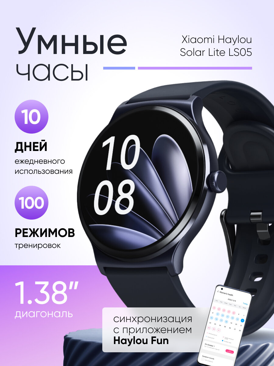 Умные часы Xiaomi Haylou LS05 Solar Lite, Bluetooth 5.3, экран 1.38", 240 мАч интересное: