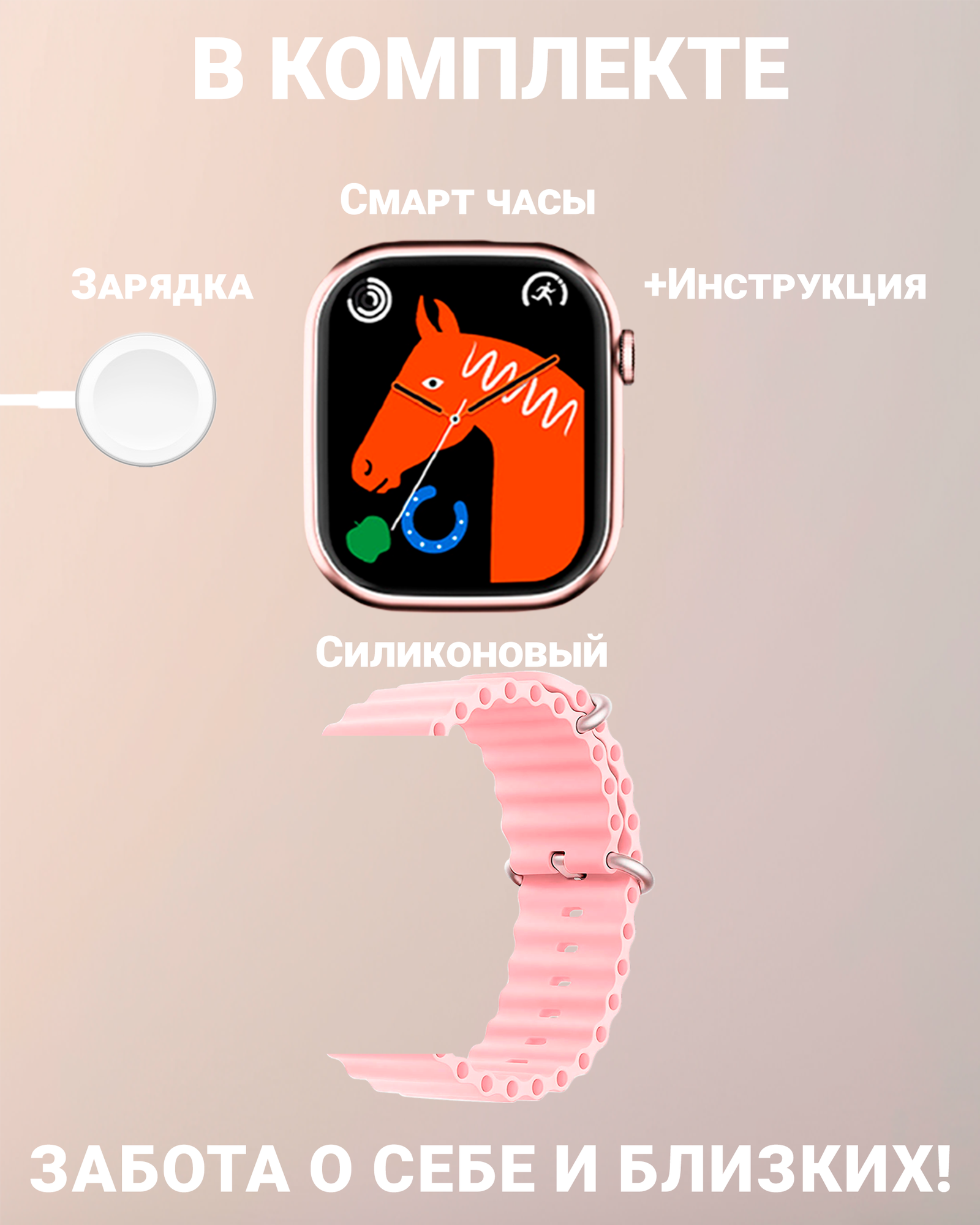 Умные смарт часы с изогнутым экраном, watch 10, X10 Pro3, 45 мм с NFC и беспроводной зарядкой, розовый
