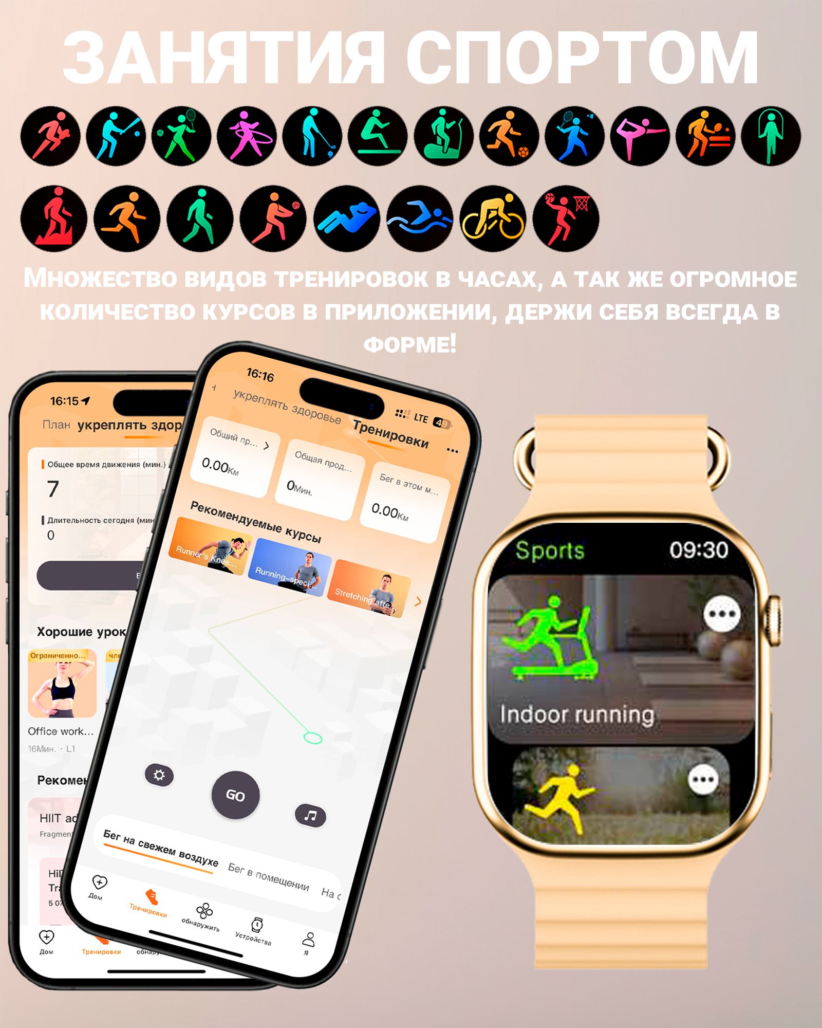 СохранитьУмные смарт часы X9 pro 2, Smart watch с Amoled дисплеем 2.02", Premium watch 9, 45 мм с NFC, Золотой интересное: