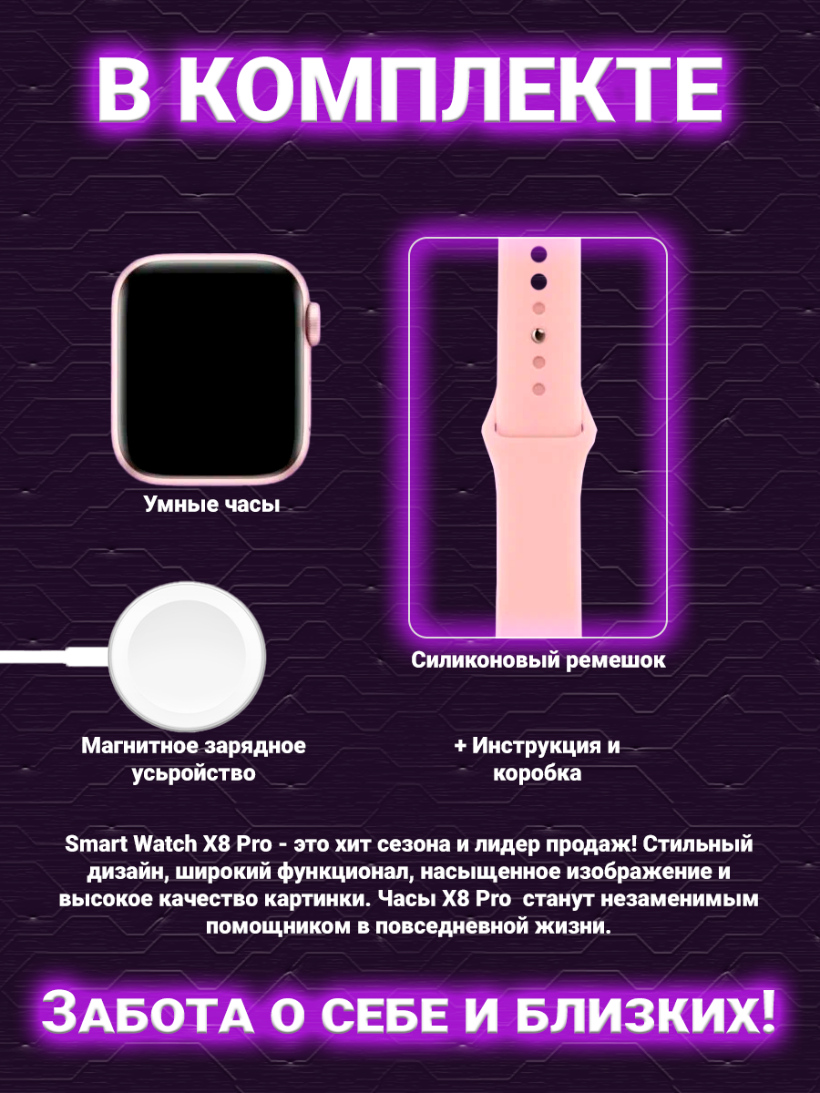 СохранитьСмарт часы X 8 pro, умные часы Smart Watch series 8, 45мм, уведомления, звонки, розовые интересное: