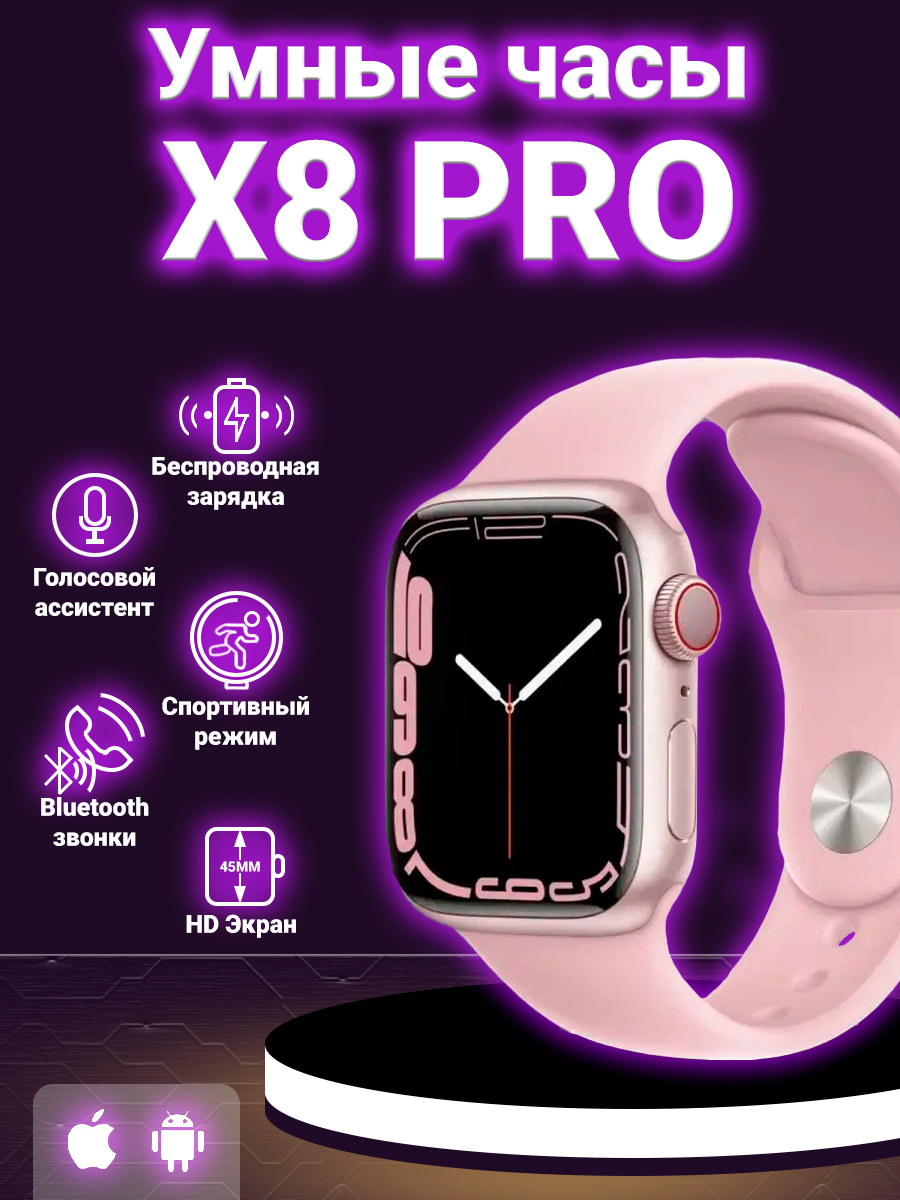 Купить Смарт часы X 8 pro, умные часы Smart Watch series 8, 45мм, уведомления, звонки, розовые